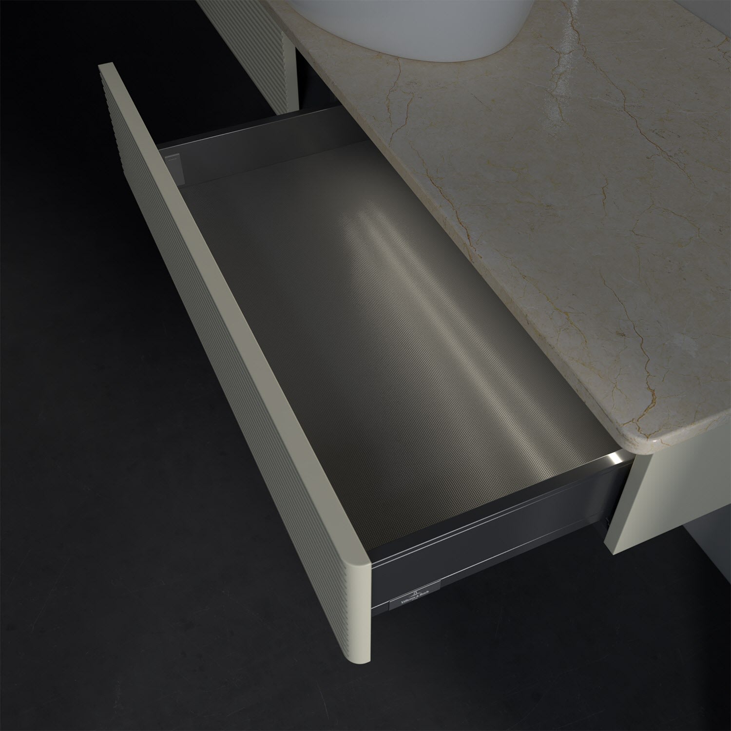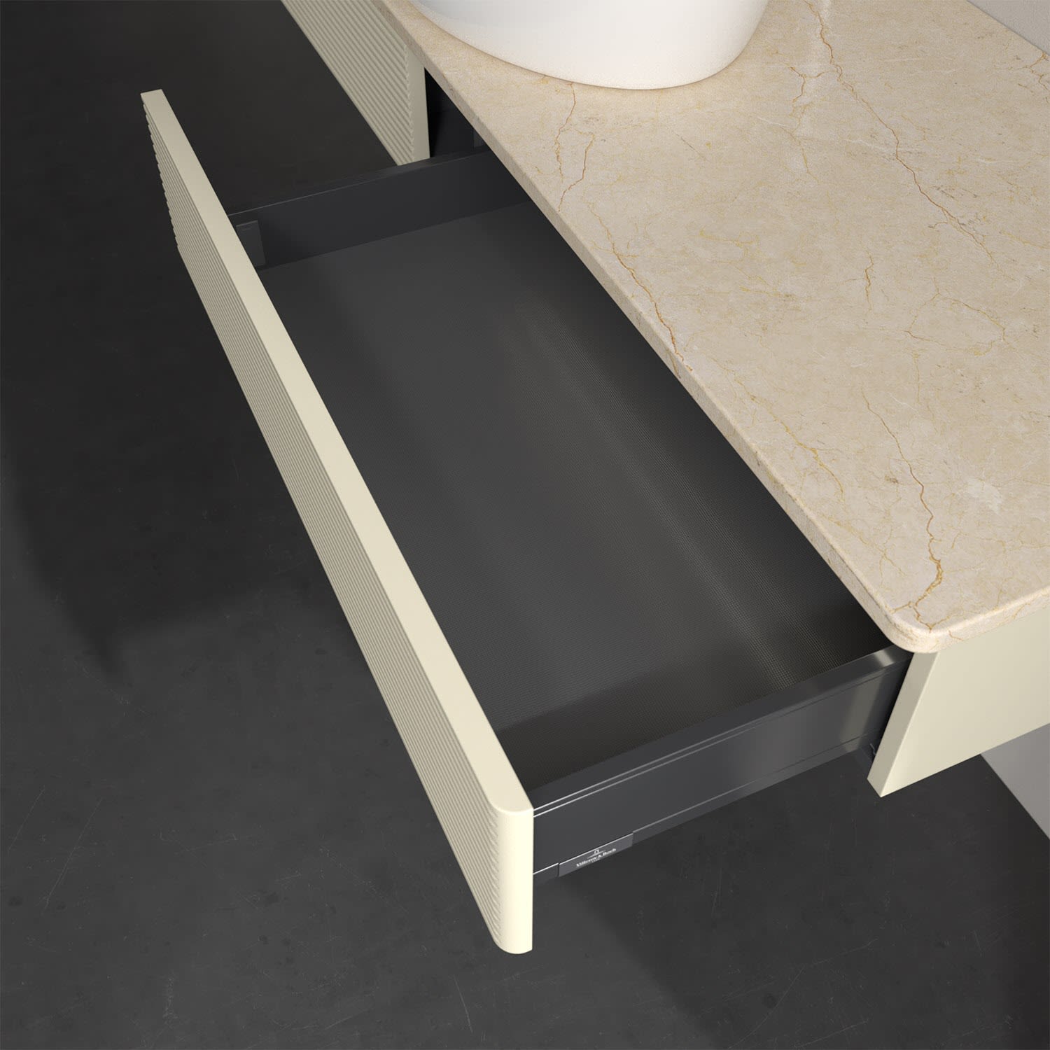 - kein Umfallen oder Verrutschen von Pflegeprodukten in den Schubladen dank rutschhemmendem Boden