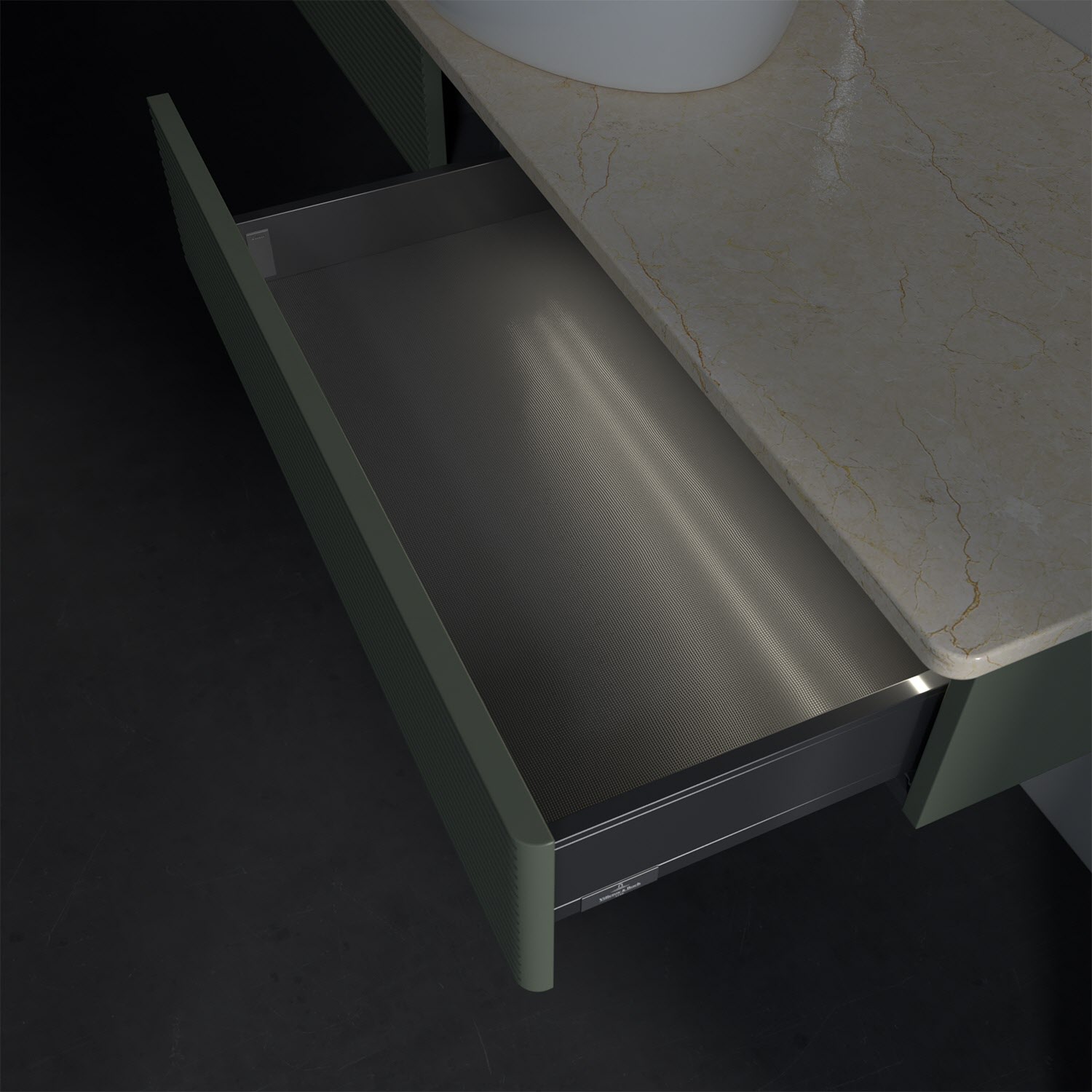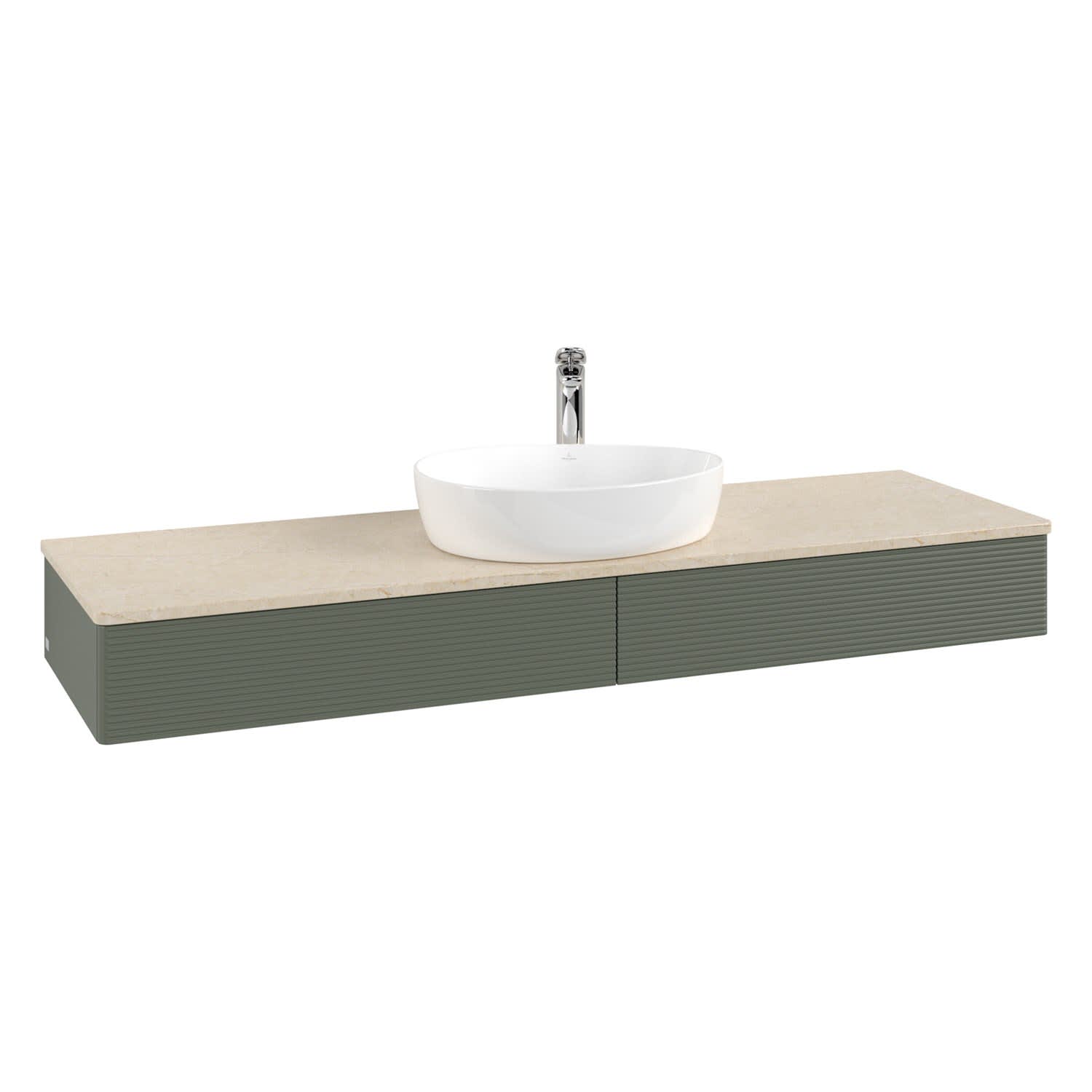 Villeroy & Boch Antao Waschbeckenunterschrank, 160 x 19 cm, 2 Auszüge mit LED-Licht, Front mit Struktur, mit Hahnloch, für Waschtisch mittig