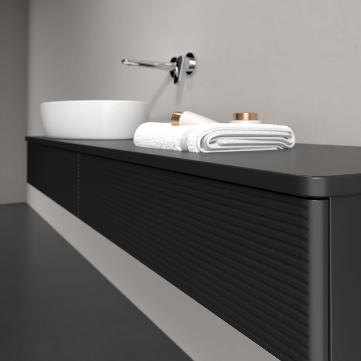 Villeroy & Boch Antao Waschbeckenunterschrank, 160 x 19 cm, 2 Auszüge mit LED-Licht, Front mit Struktur, mit Hahnloch, für Waschtisch links