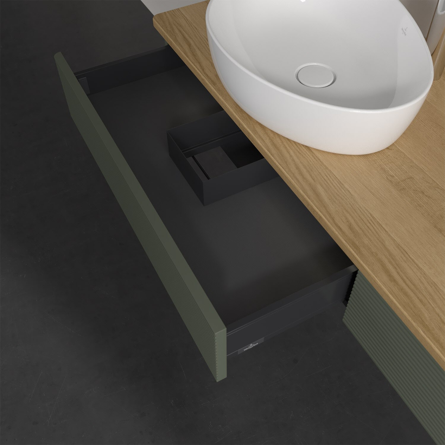 Villeroy & Boch Antao Waschbeckenunterschrank, 160 x 19 cm, 2 Auszüge mit LED-Licht, Front mit Struktur, mit Hahnloch, für Waschtisch links