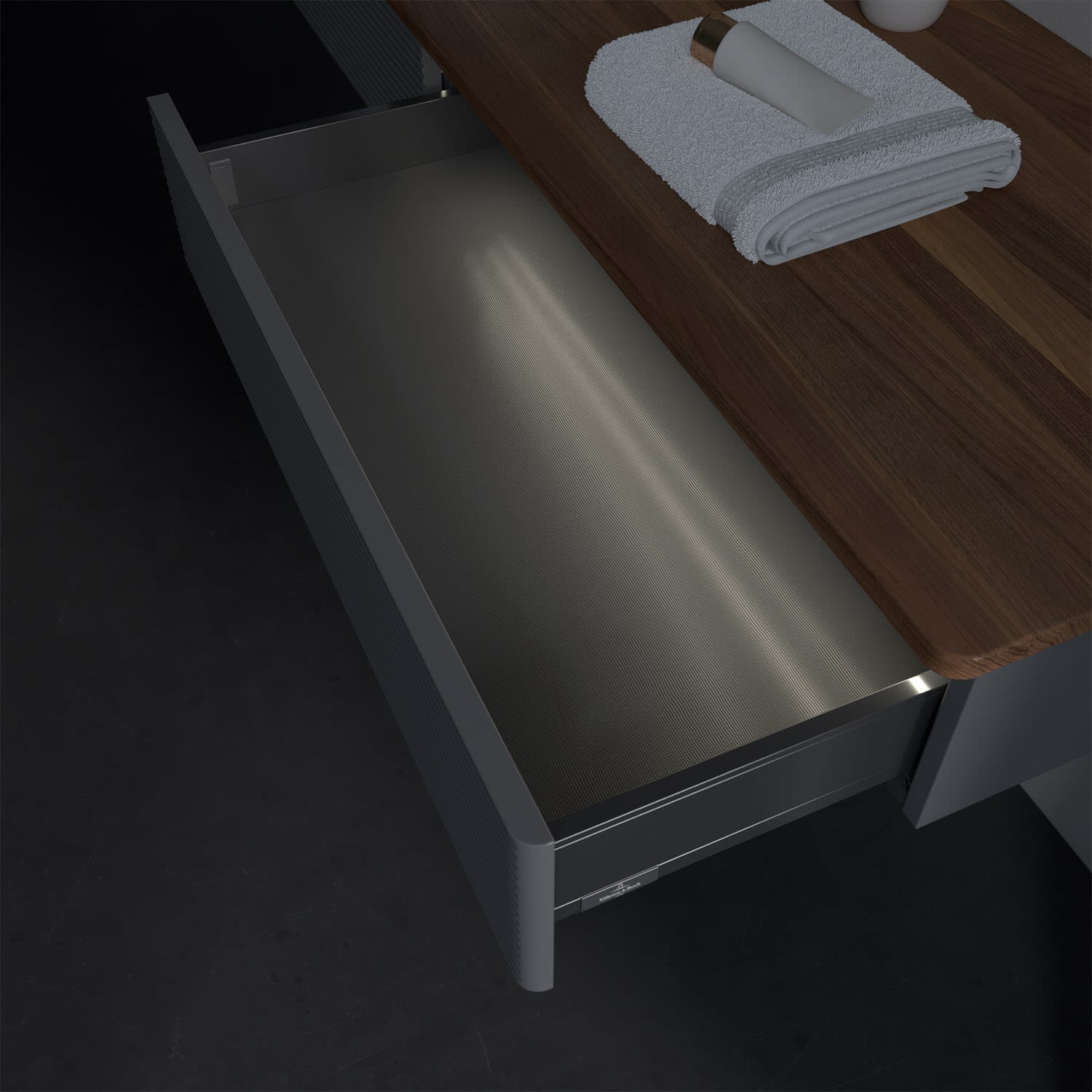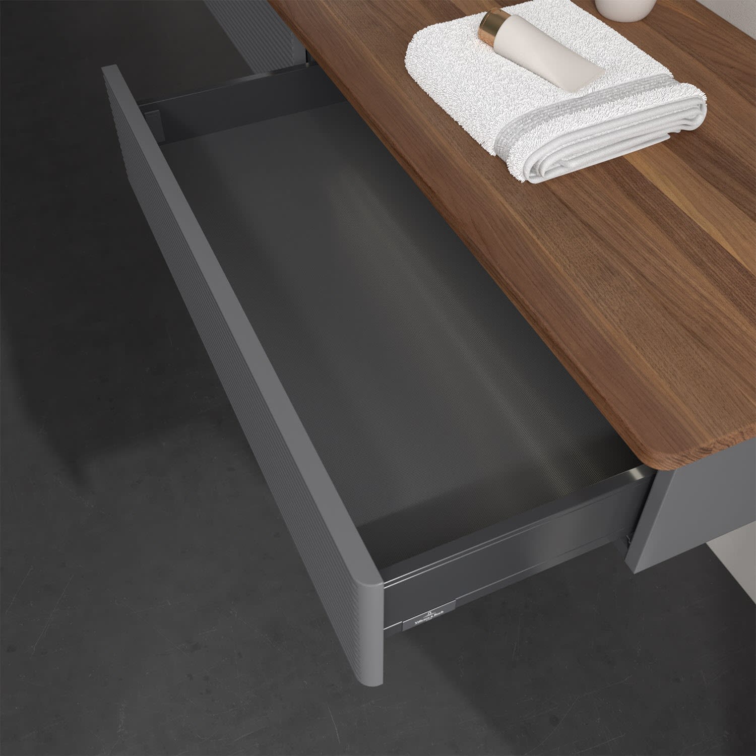 - kein Umfallen oder Verrutschen von Pflegeprodukten in den Schubladen dank rutschhemmendem Boden