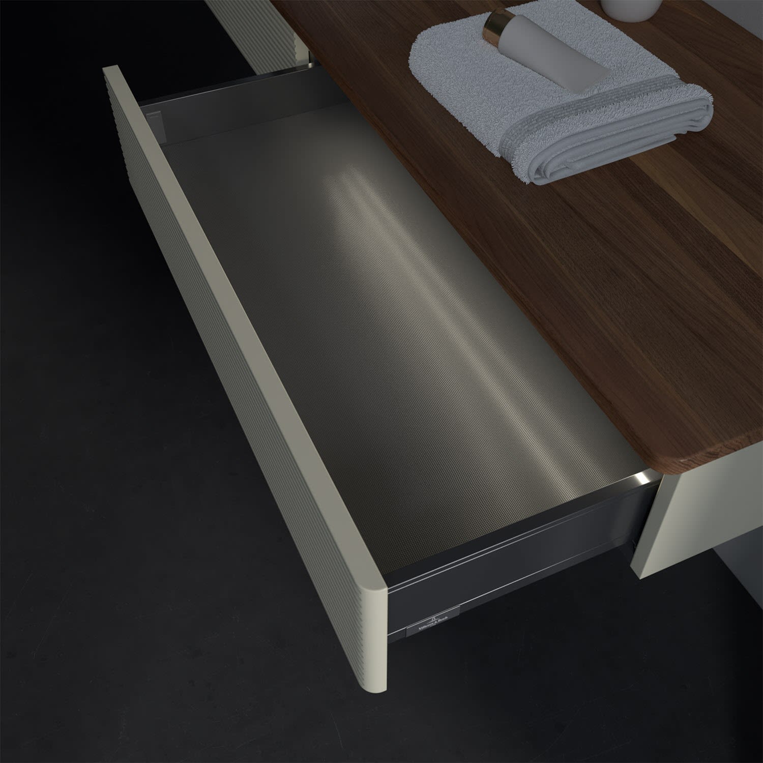 - kein Umfallen oder Verrutschen von Pflegeprodukten in den Schubladen dank rutschhemmendem Boden