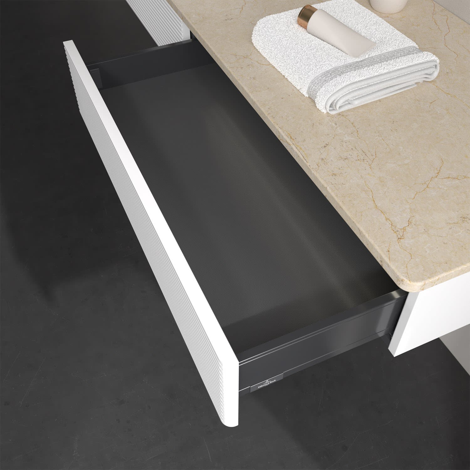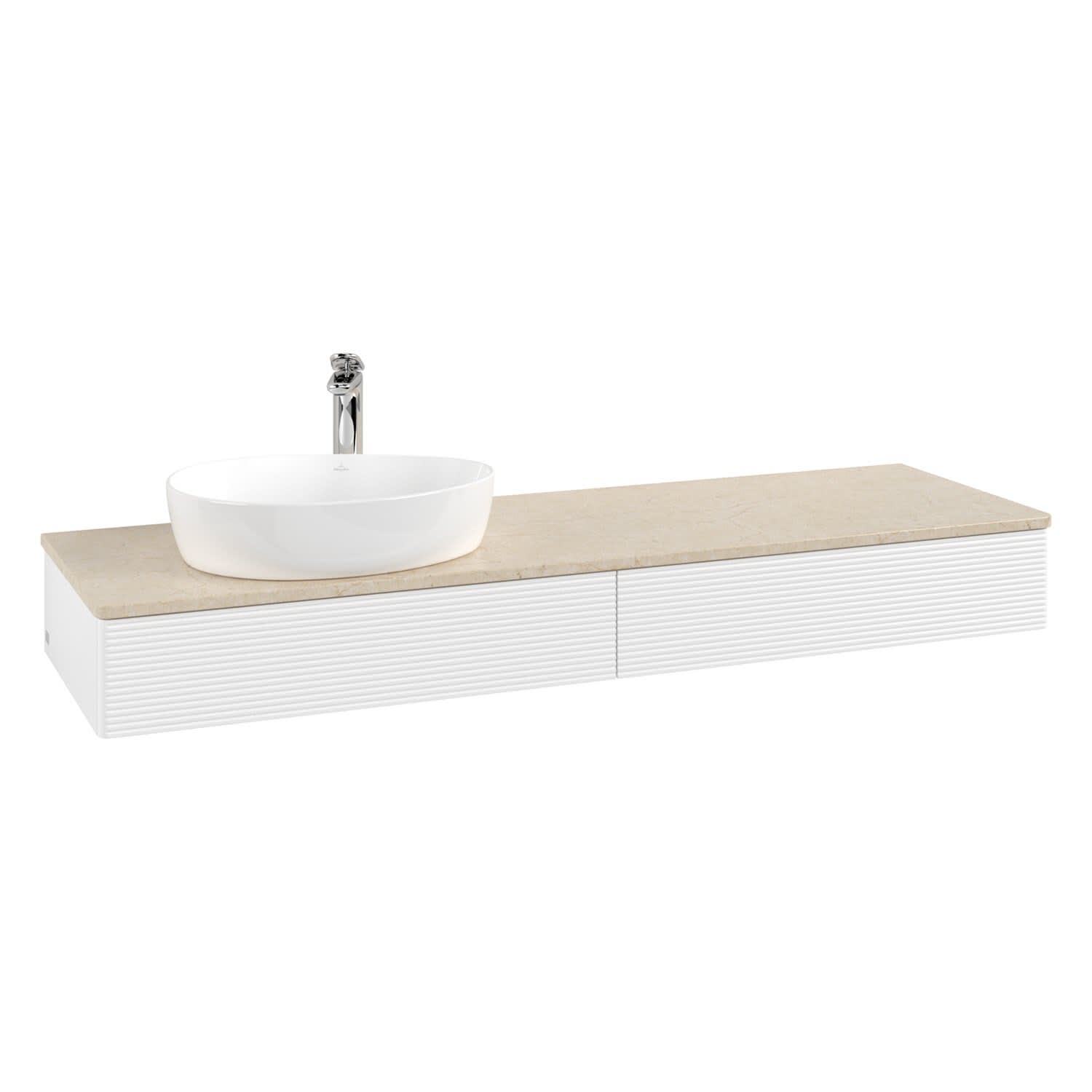 Villeroy & Boch Antao Waschbeckenunterschrank, 160 x 19 cm, 2 Auszüge mit LED-Licht, Front mit Struktur, mit Hahnloch, für Waschtisch links