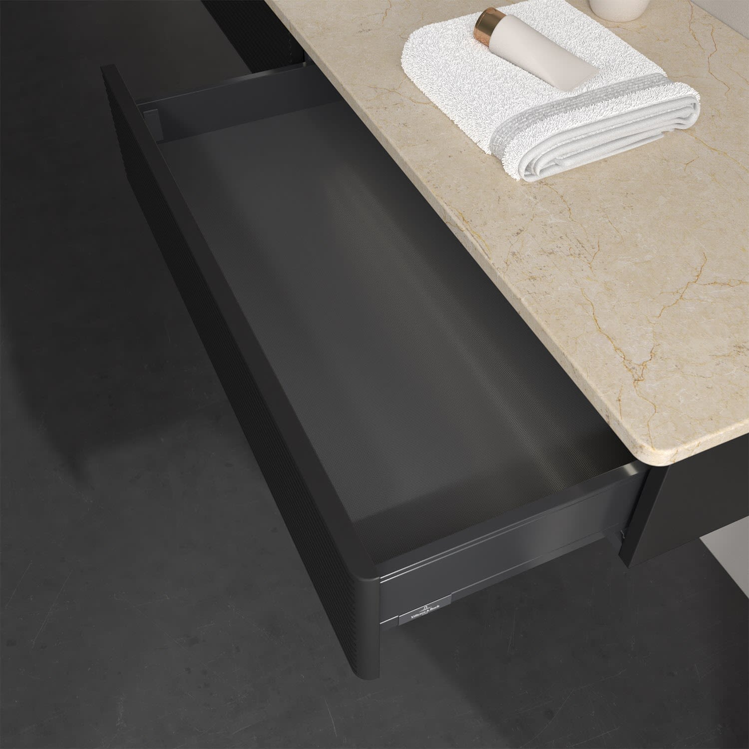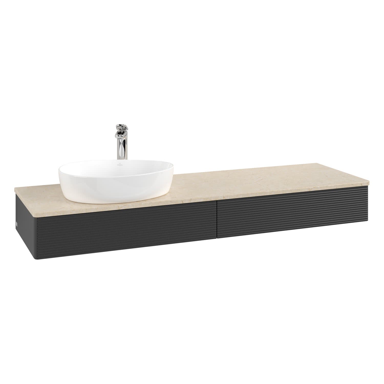 Villeroy & Boch Antao Waschbeckenunterschrank, 160 x 19 cm, 2 Auszüge mit LED-Licht, Front mit Struktur, mit Hahnloch, für Waschtisch links