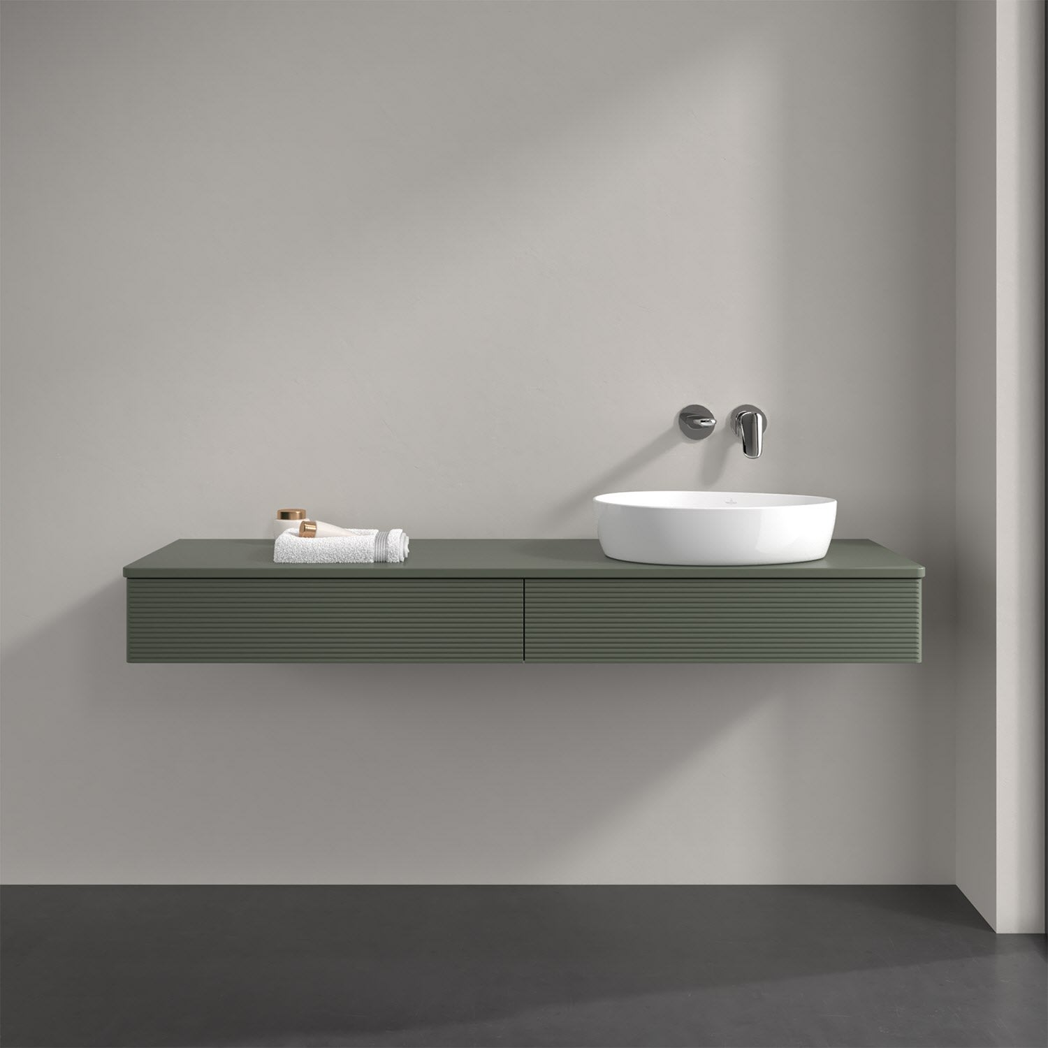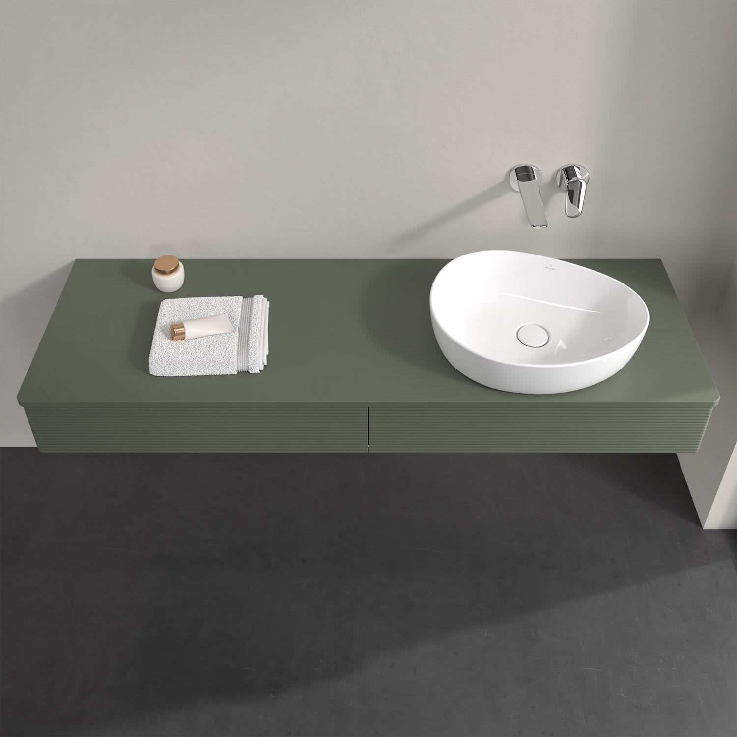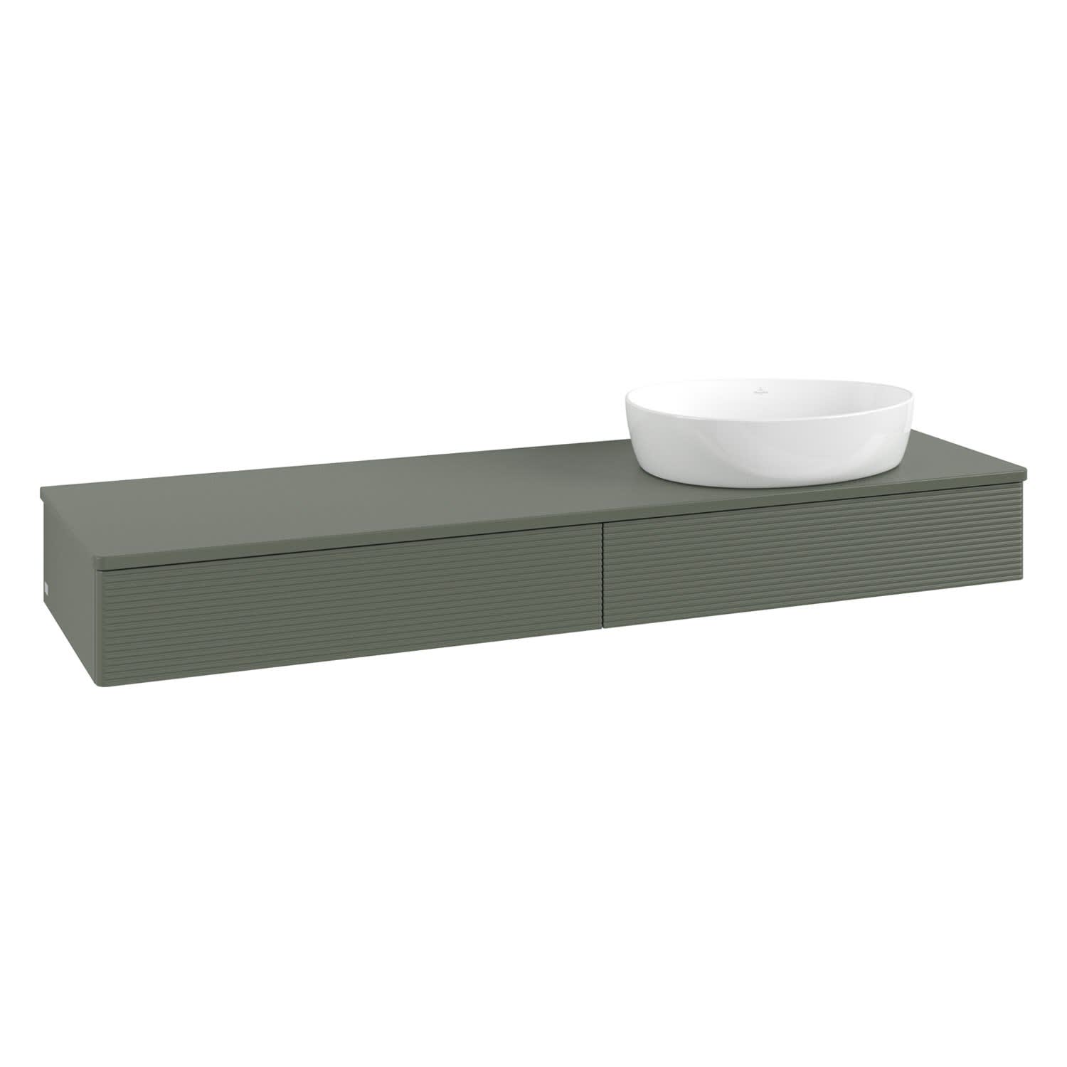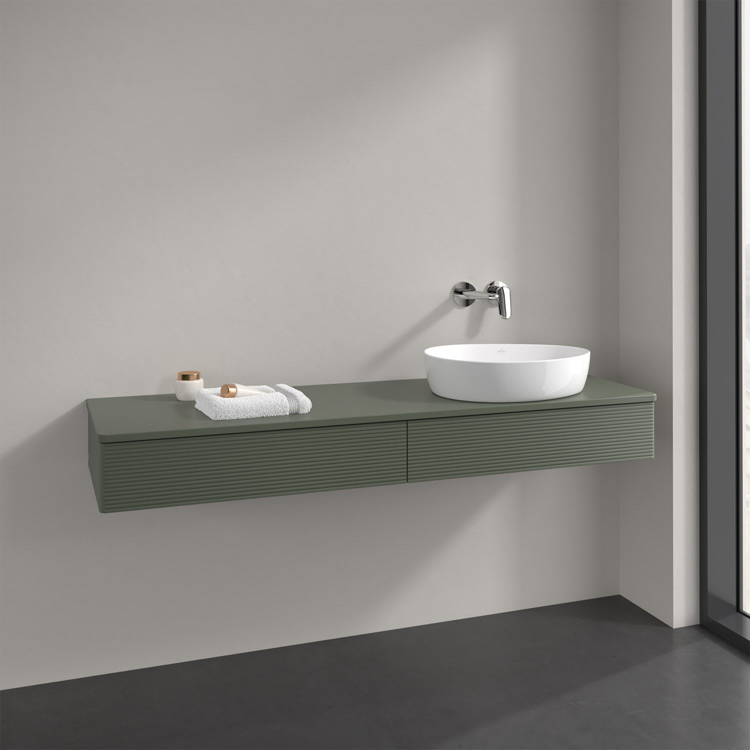 Villeroy & Boch Antao Waschbeckenunterschrank, 160 x 19 cm, 2 Auszüge mit LED-Licht, Front mit Struktur, mit Hahnloch, für Waschtisch rechts