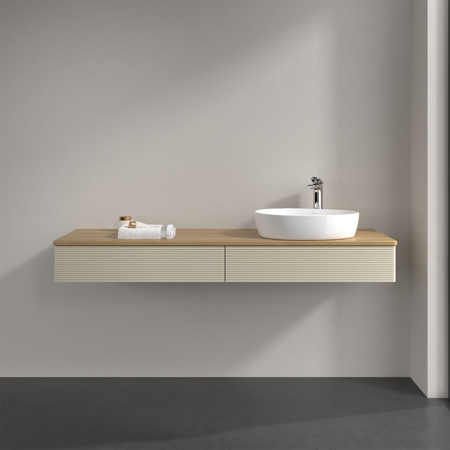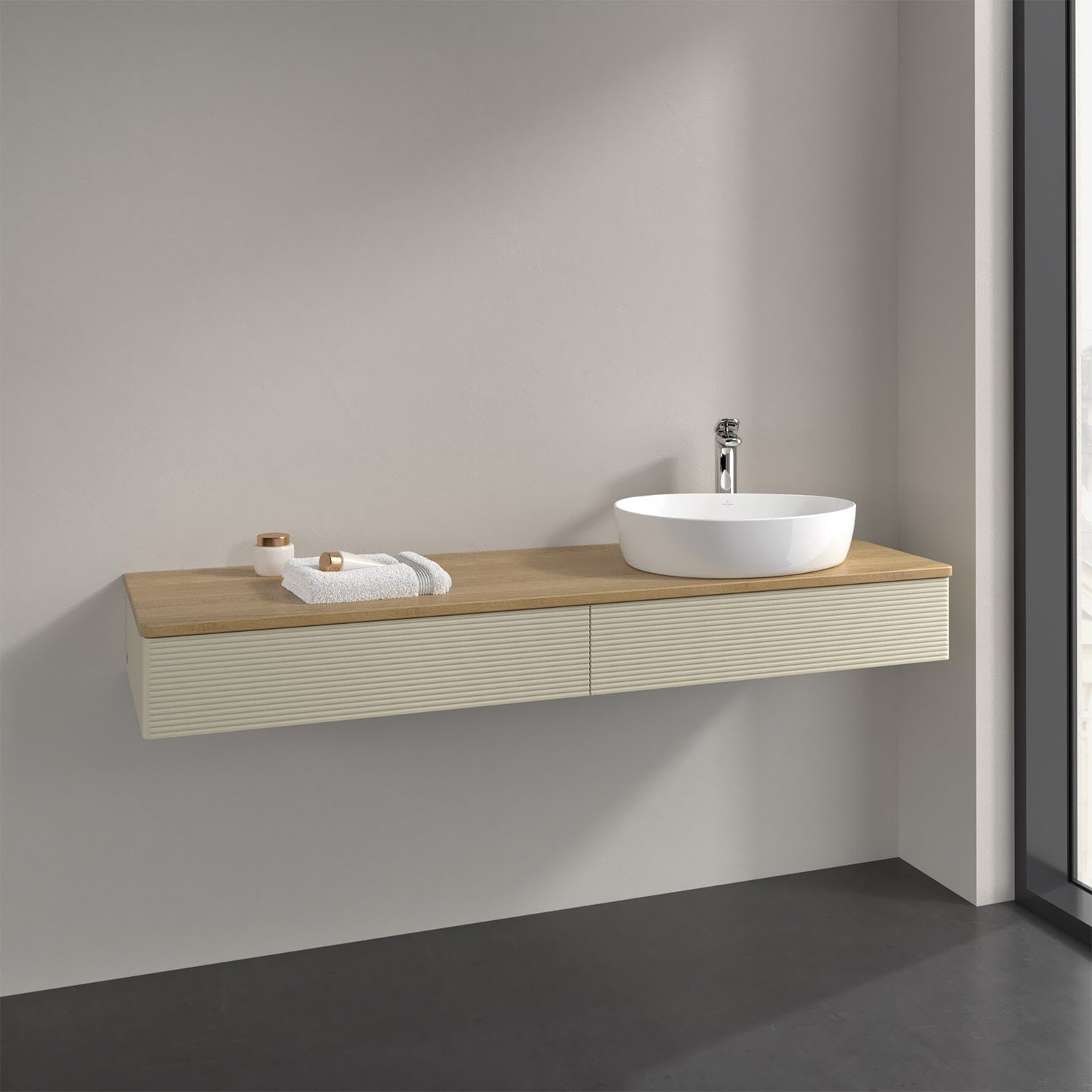 Villeroy & Boch Antao Waschbeckenunterschrank, 160 x 19 cm, 2 Auszüge mit LED-Licht, Front mit Struktur, mit Hahnloch, für Waschtisch rechts