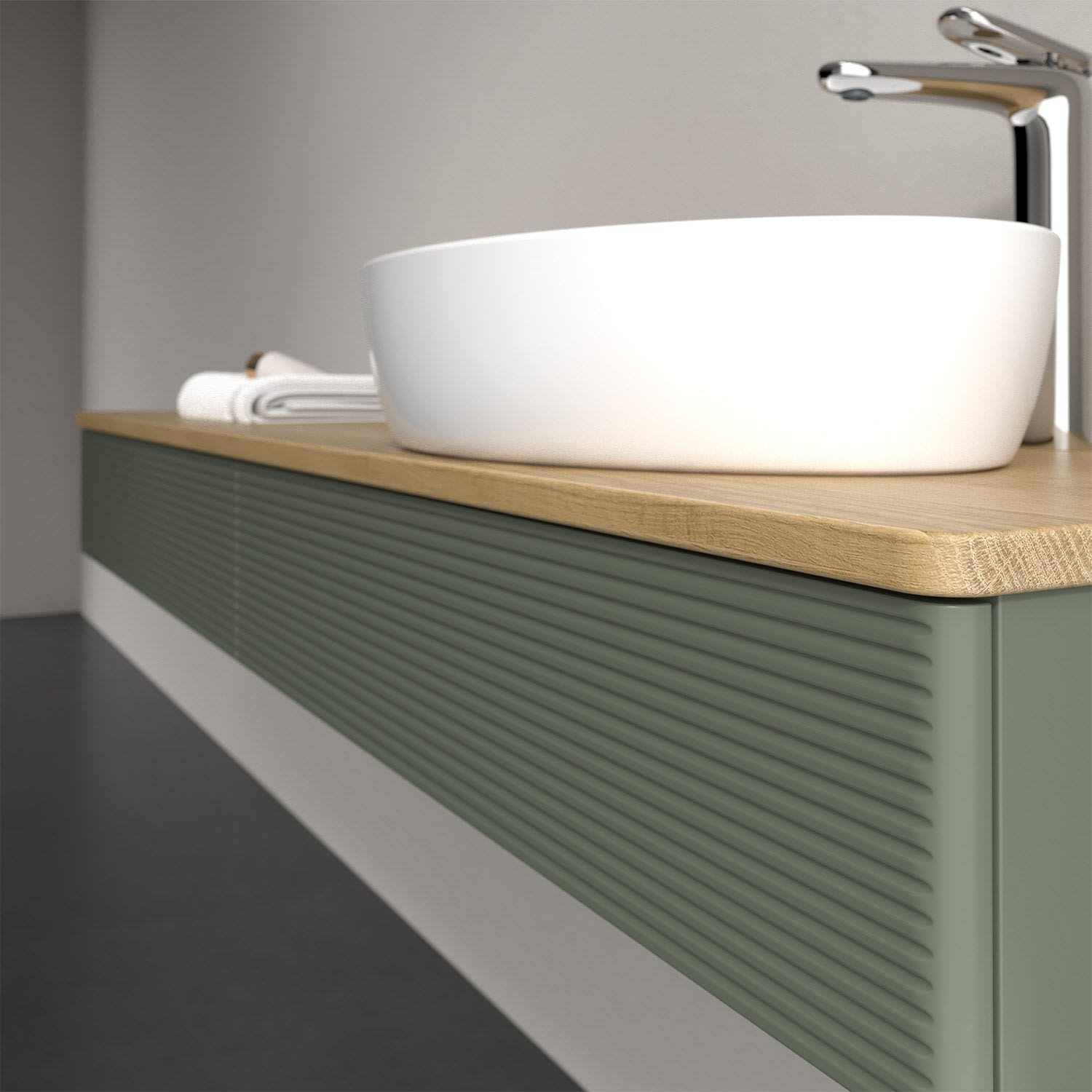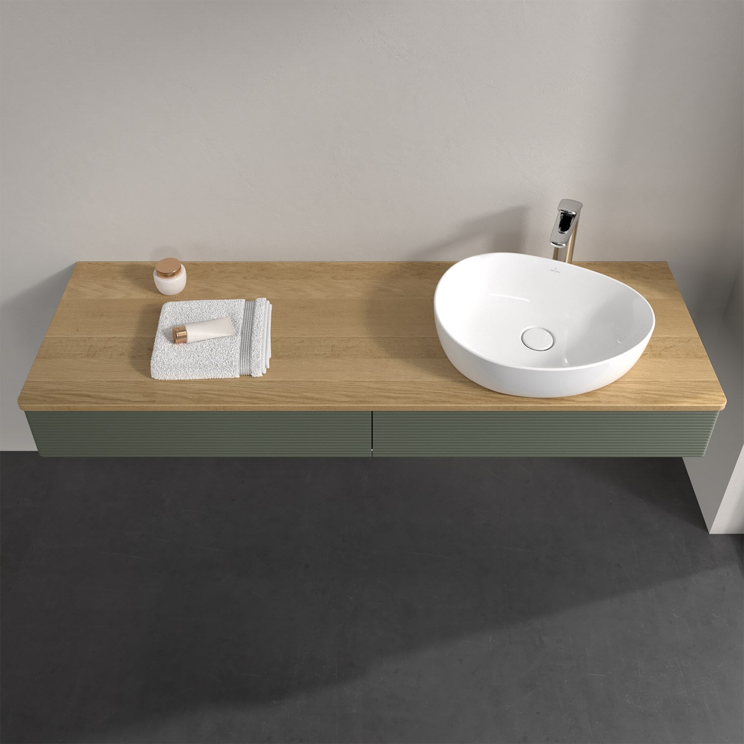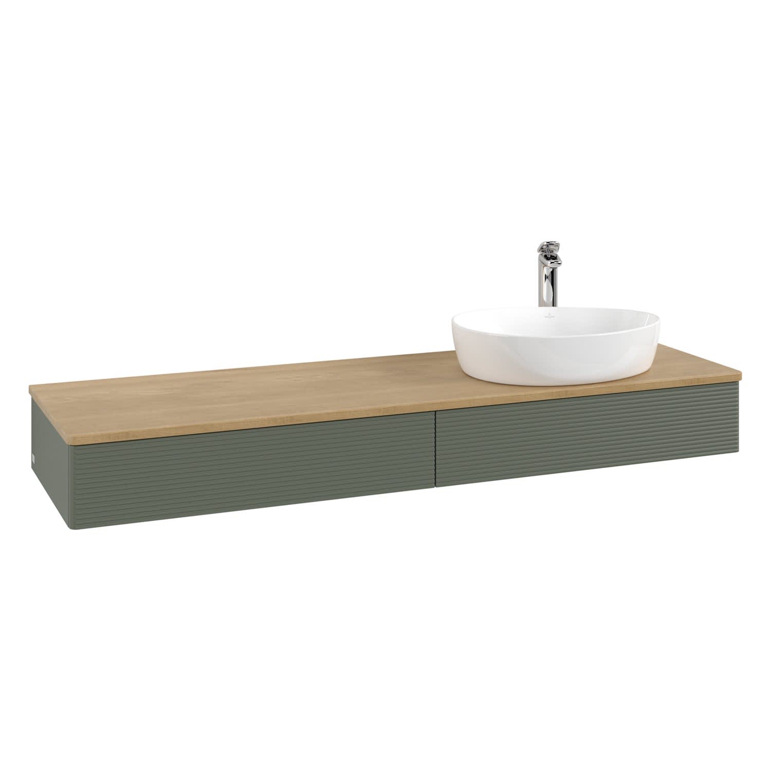Villeroy & Boch Antao Waschbeckenunterschrank, 160 x 19 cm, 2 Auszüge mit LED-Licht, Front mit Struktur, mit Hahnloch, für Waschtisch rechts