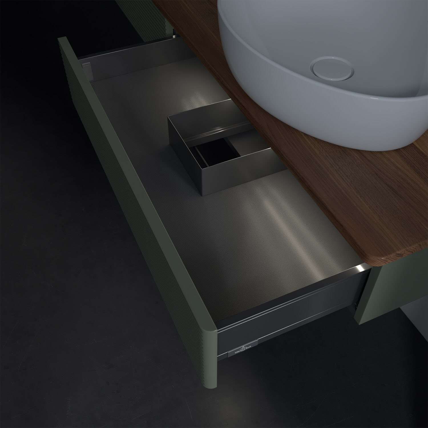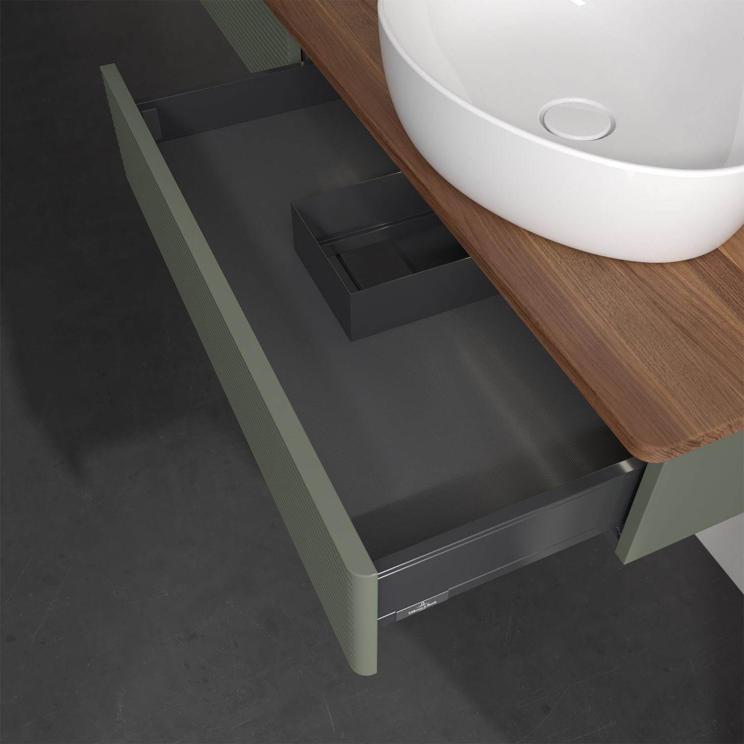 Villeroy & Boch Antao Waschbeckenunterschrank, 160 x 19 cm, 2 Auszüge mit LED-Licht, Front mit Struktur, mit Hahnloch, für Waschtisch rechts