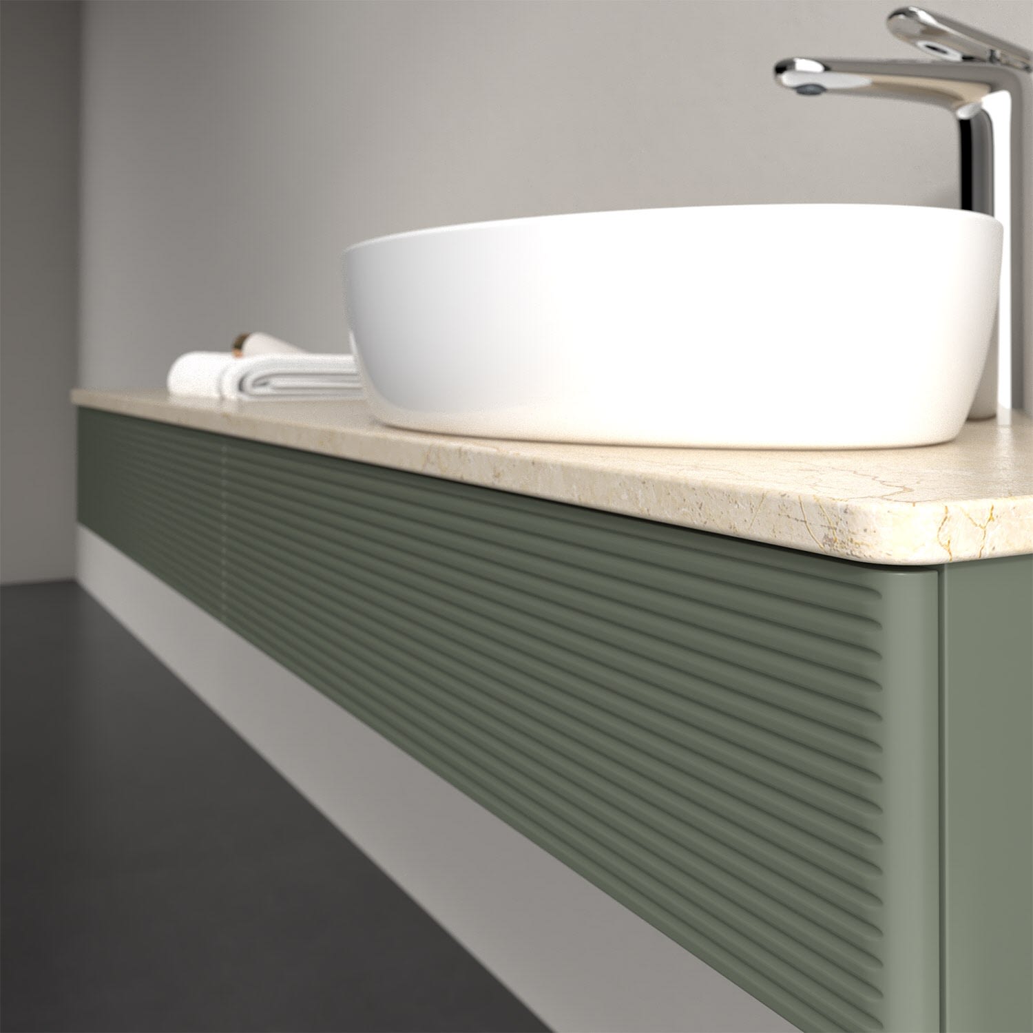 Für diesen Waschbeckenunterschrank stehen Ihnen Aufsatzwaschtische aus verschiedenen Serien zur Verfügung (siehe "Passliste" unter Downloads). Ein ausgewähltes Beispiel finden Sie im Zubehör. Den Waschtisch bitte separat mitbestellen.