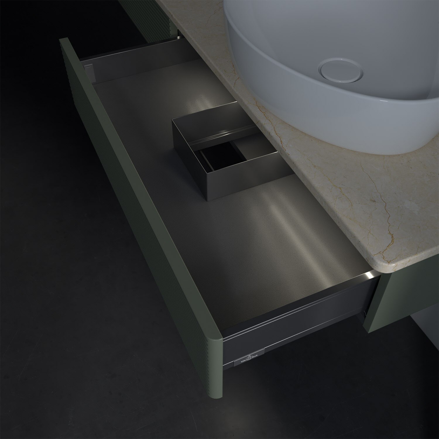 - kein Umfallen oder Verrutschen von Pflegeprodukten in den Schubladen dank rutschhemmendem Boden