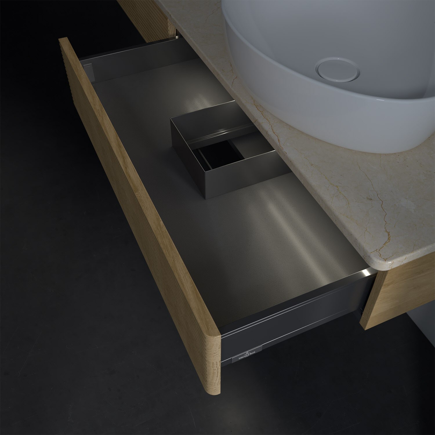 - kein Umfallen oder Verrutschen von Pflegeprodukten in den Schubladen dank rutschhemmendem Boden