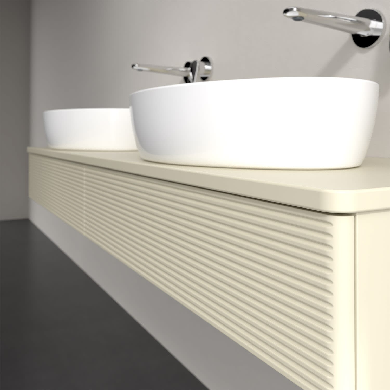 Villeroy & Boch Antao Waschbeckenunterschrank, 160 x 19 cm, 2 Auszüge mit LED-Licht, Front mit Struktur, mit Hahnloch, für Waschtisch links und rechts