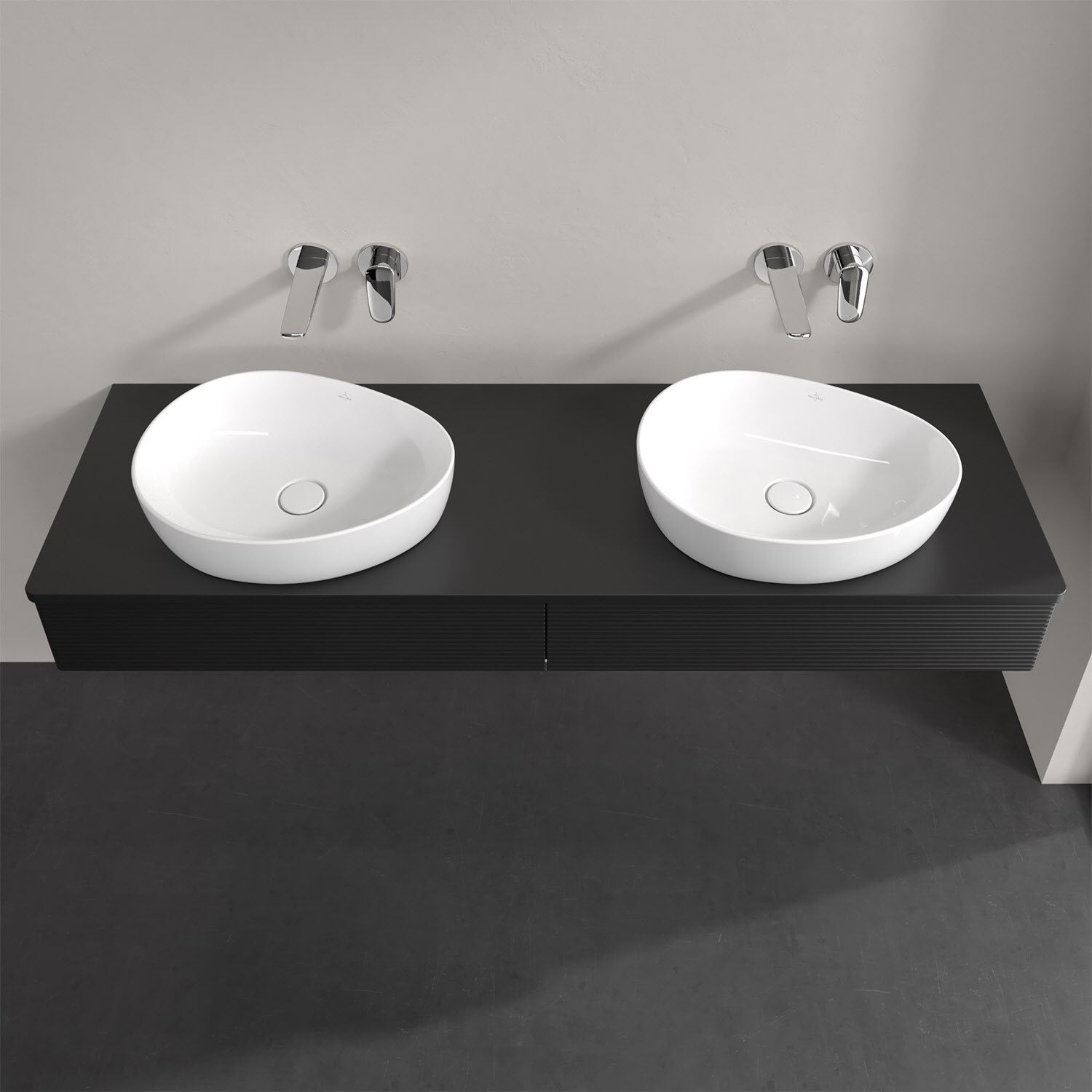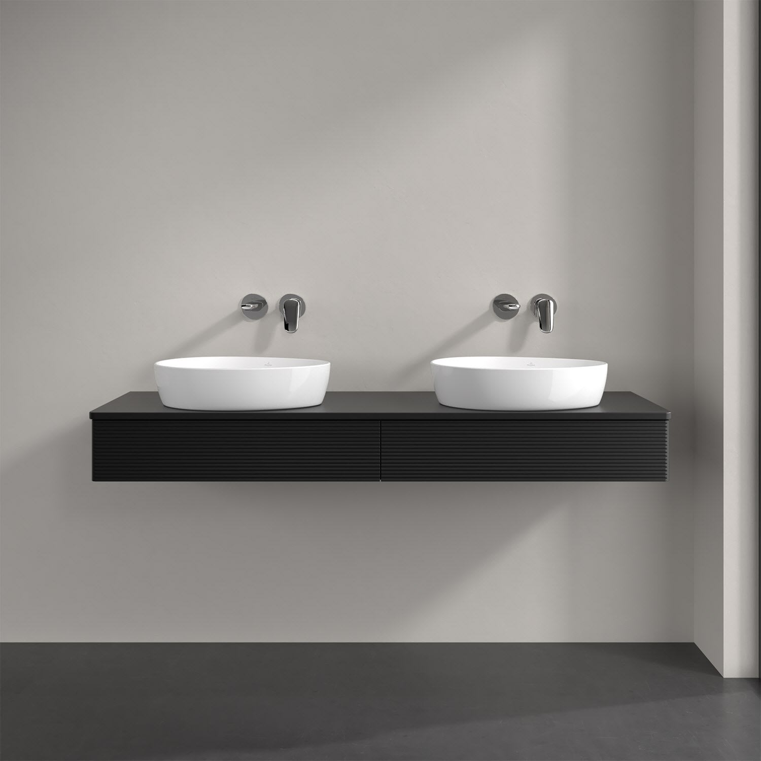 Villeroy & Boch Antao Waschbeckenunterschrank, 160 x 19 cm, 2 Auszüge mit LED-Licht, Front mit Struktur, mit Hahnloch, für Waschtisch links und rechts