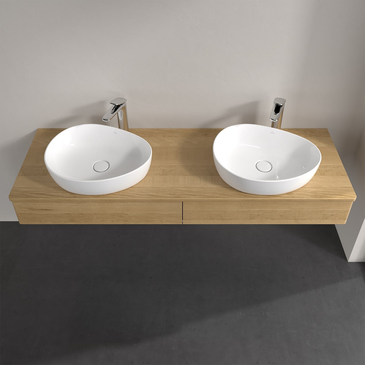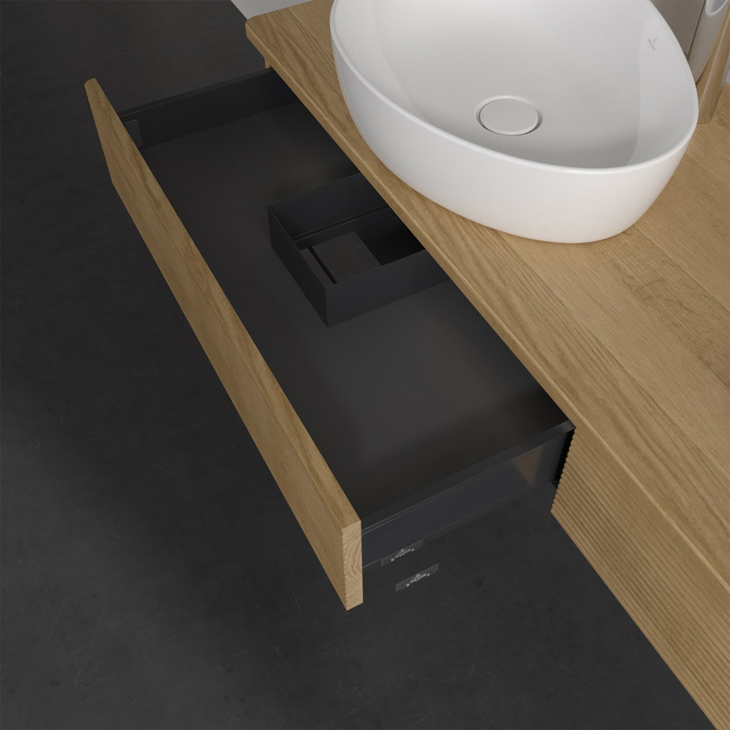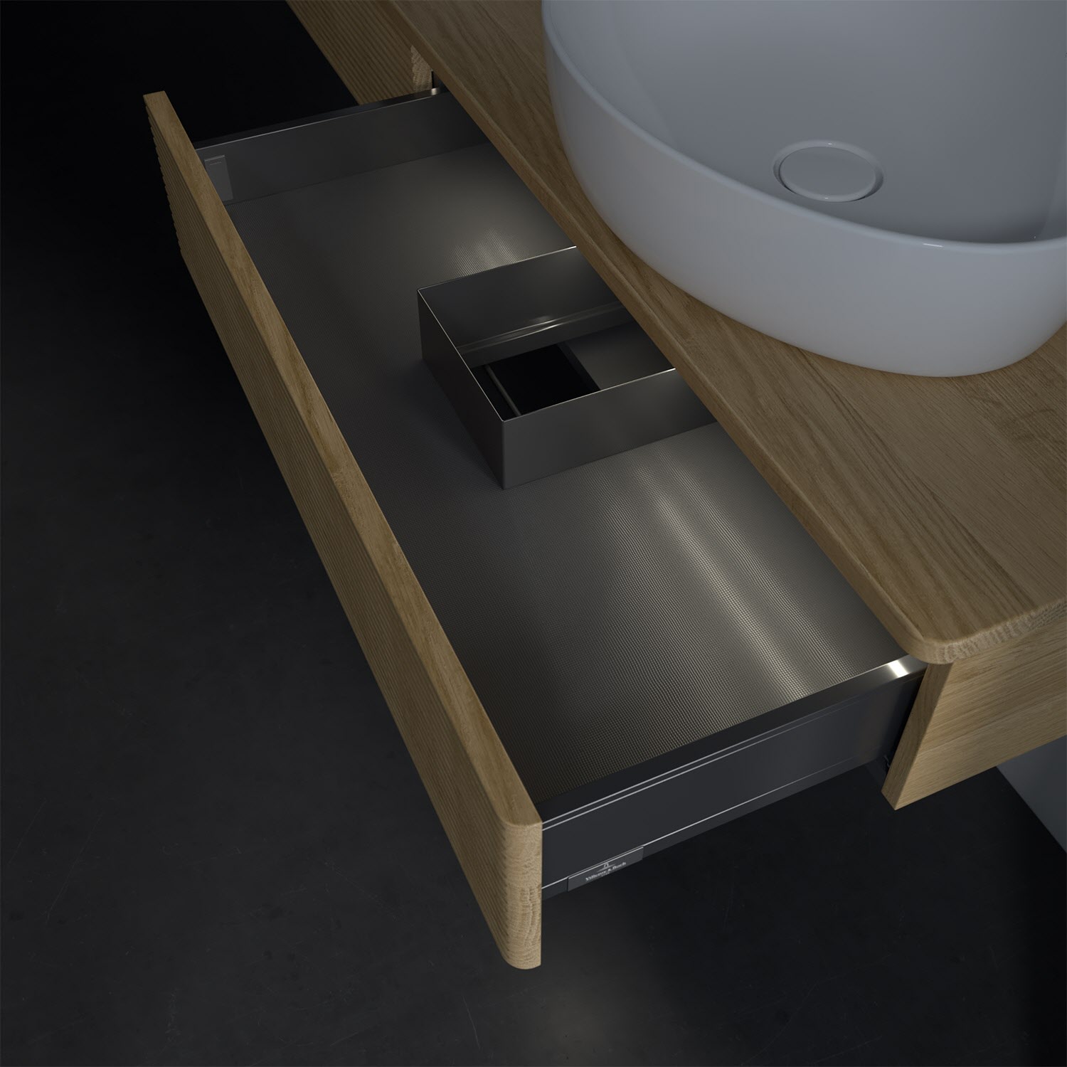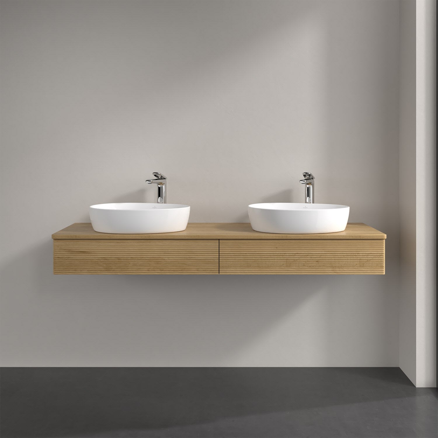 Villeroy & Boch Antao Waschbeckenunterschrank, 160 x 19 cm, 2 Auszüge mit LED-Licht, Front mit Struktur, mit Hahnloch, für Waschtisch links und rechts
