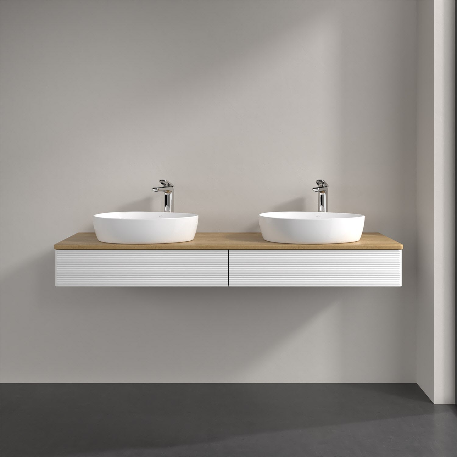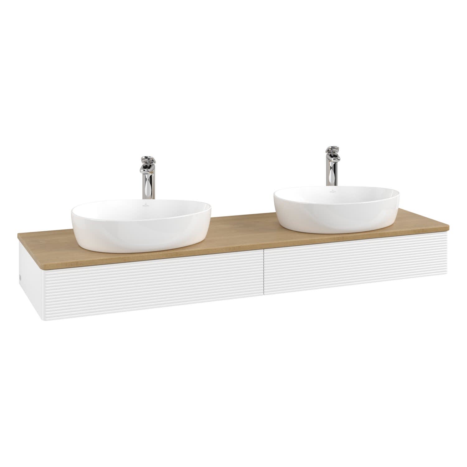 Villeroy & Boch Antao Waschbeckenunterschrank, 160 x 19 cm, 2 Auszüge mit LED-Licht, Front mit Struktur, mit Hahnloch, für Waschtisch links und rechts