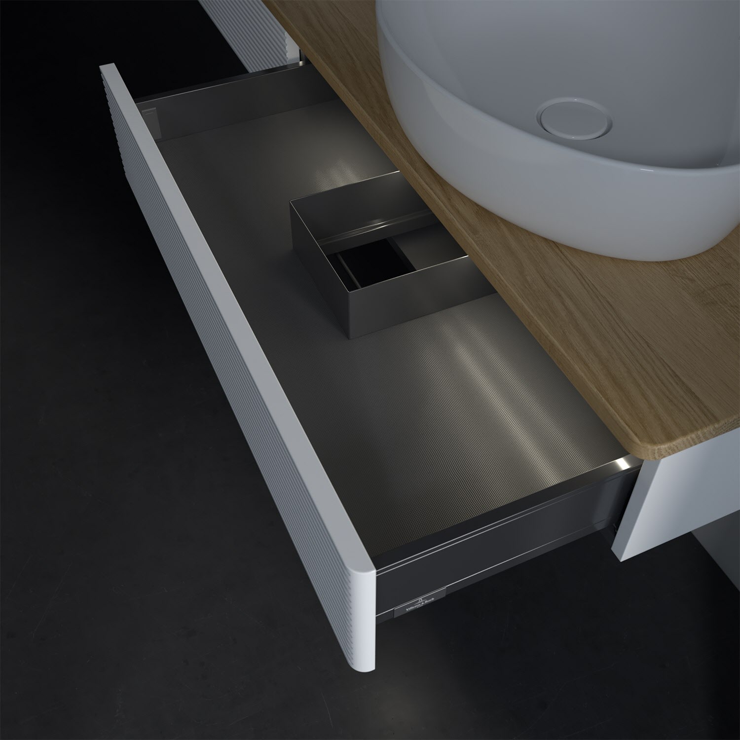 - kein Umfallen oder Verrutschen von Pflegeprodukten in den Schubladen dank rutschhemmendem Boden