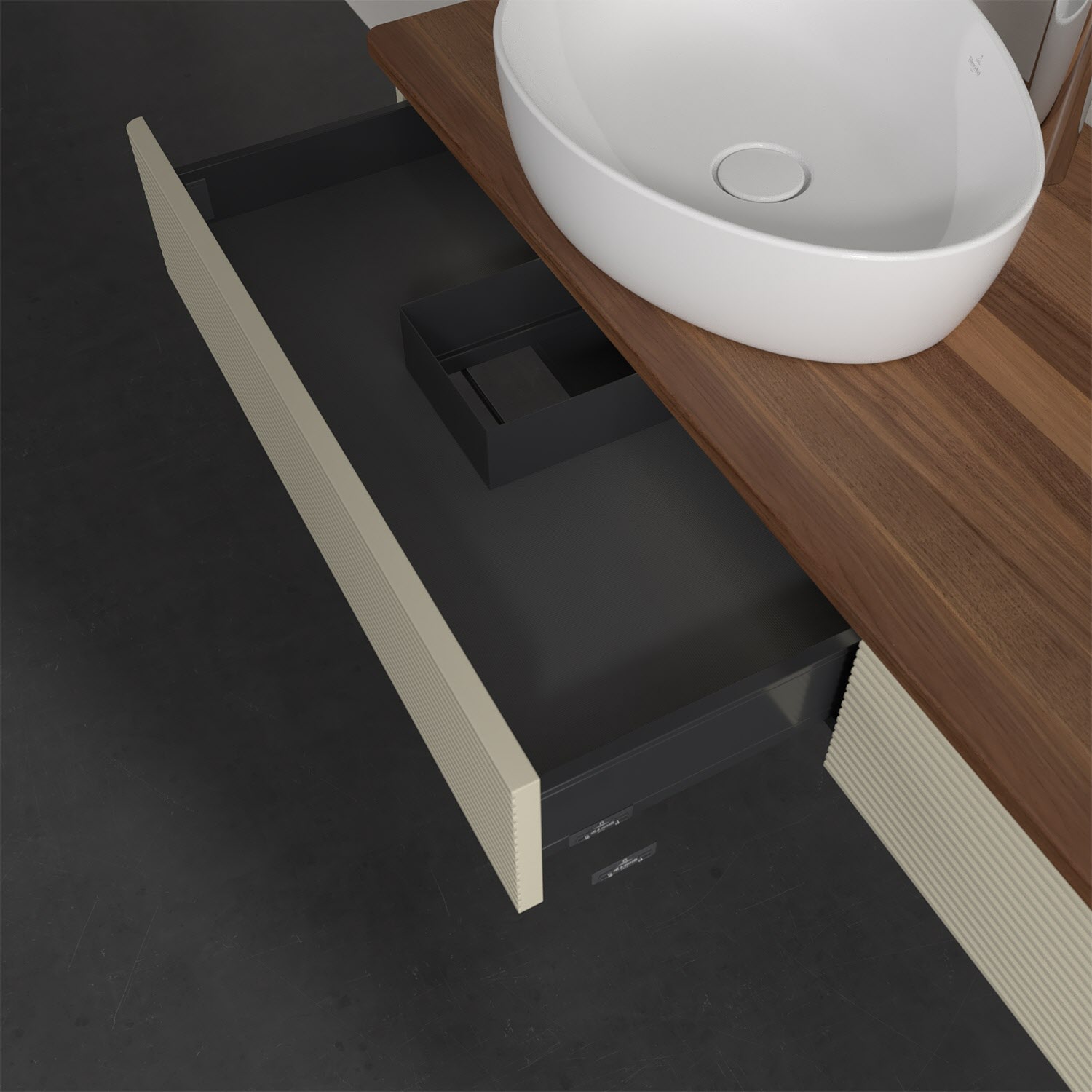 Villeroy & Boch Antao Waschbeckenunterschrank, 160 x 19 cm, 2 Auszüge mit LED-Licht, Front mit Struktur, mit Hahnloch, für Waschtisch links und rechts