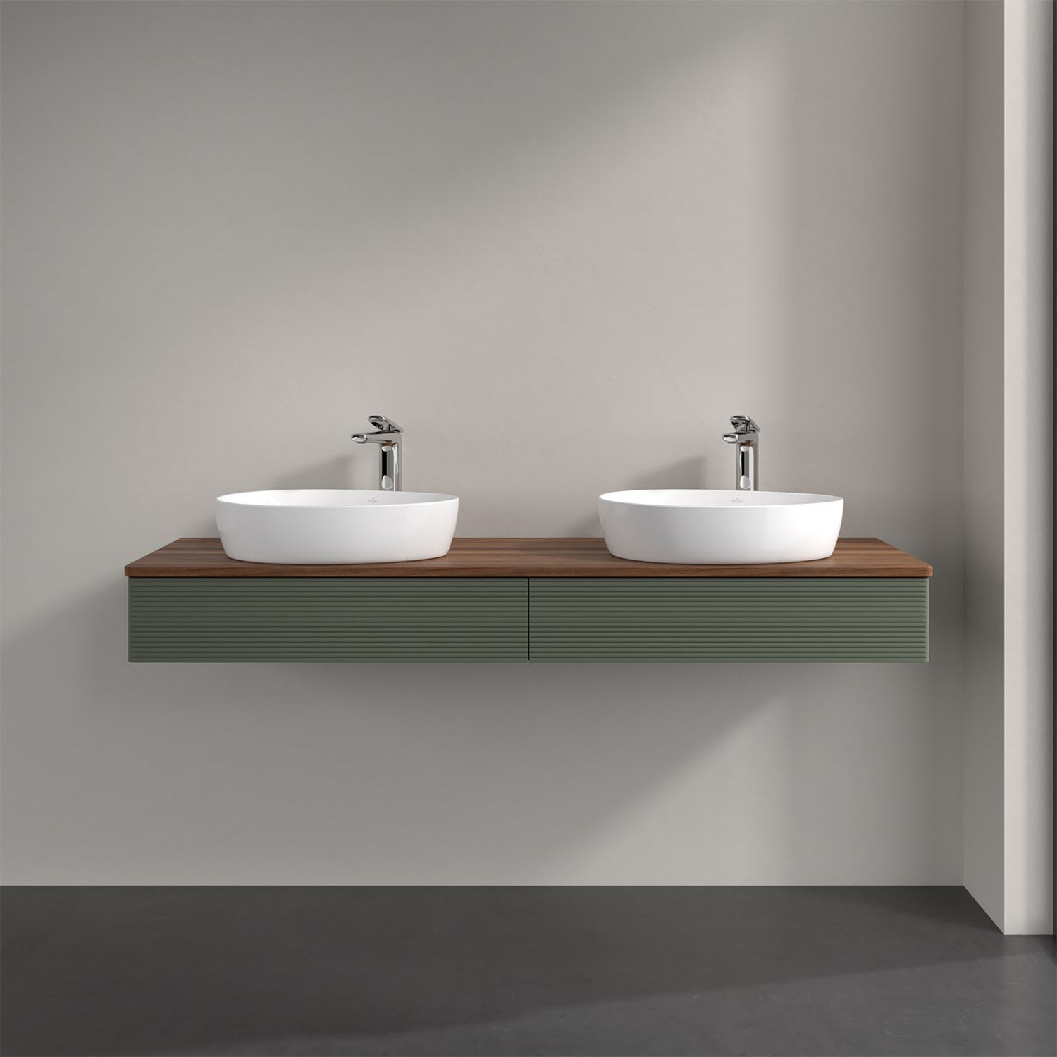 Der wandhängende Antao Waschtischunterschrank für zwei Aufsatzwaschtische bietet mit seinen beiden Auszügen und seiner erstaunlichen Größe viel Platz zum Verstauen von Utensilien im Badezimmer. Inspiriert von der Natur überzeugt der Unterschrank auch optisch mit sanfter Formsprache und abgerundete Kanten. Die grifflosen Auszüge mit strukturierter Front sind mit der Push-to-Open Funktion ausgestattet und verfügen über einen Antirutschboden, damit Utensilien sicher verstaut werden können. Den Überblick behält man dank der warmweißen Auszugsbeleuchtung, die sich automatisch beim Öffnen einschaltet. Mit seiner Vollauszug- und Selbsteinzug-Funktion ist der Schrank einfach praktisch und leicht zu bedienen. Qualität von Villeroy & Boch! Für eine besonders leichte Pflege sorgt die mehrschichtig deckend lackierte Oberfläche. Bei der Ausführung in Massivholz wird dank des verarbeiteten Massivholzes jedes Möbel zu einem Unikat, das sich durch das lebendige Naturmaterial durch seine einzigartige Struktur und Maserung auszeichnet.
