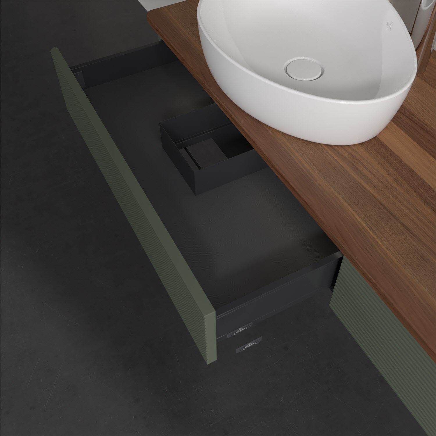 - kein Umfallen oder Verrutschen von Pflegeprodukten in den Schubladen dank rutschhemmendem Boden