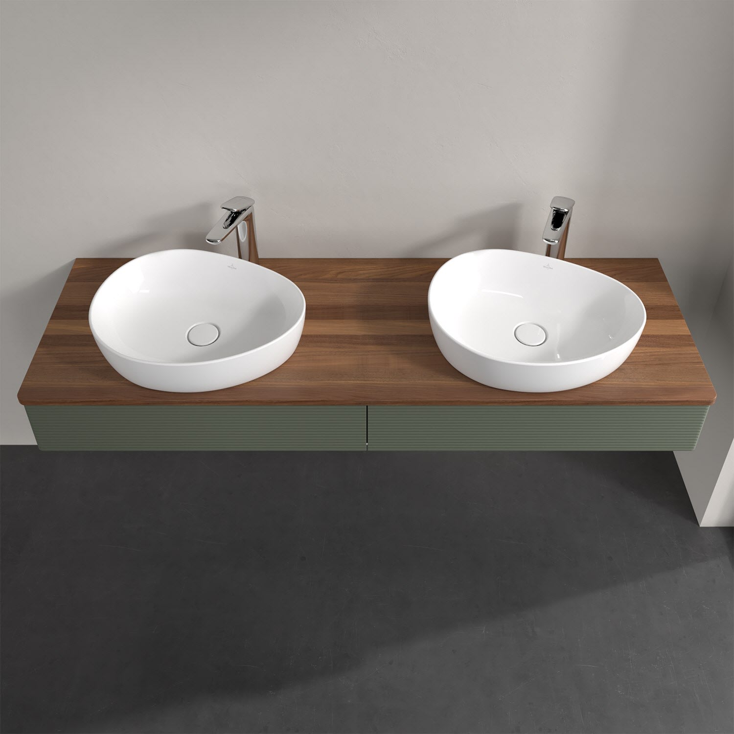 Für diesen Waschbeckenunterschrank stehen Ihnen Aufsatzwaschtische aus verschiedenen Serien zur Verfügung (siehe "Passliste" unter Downloads). Ein ausgewähltes Beispiel finden Sie im Zubehör. Den Waschtisch bitte separat mitbestellen.
