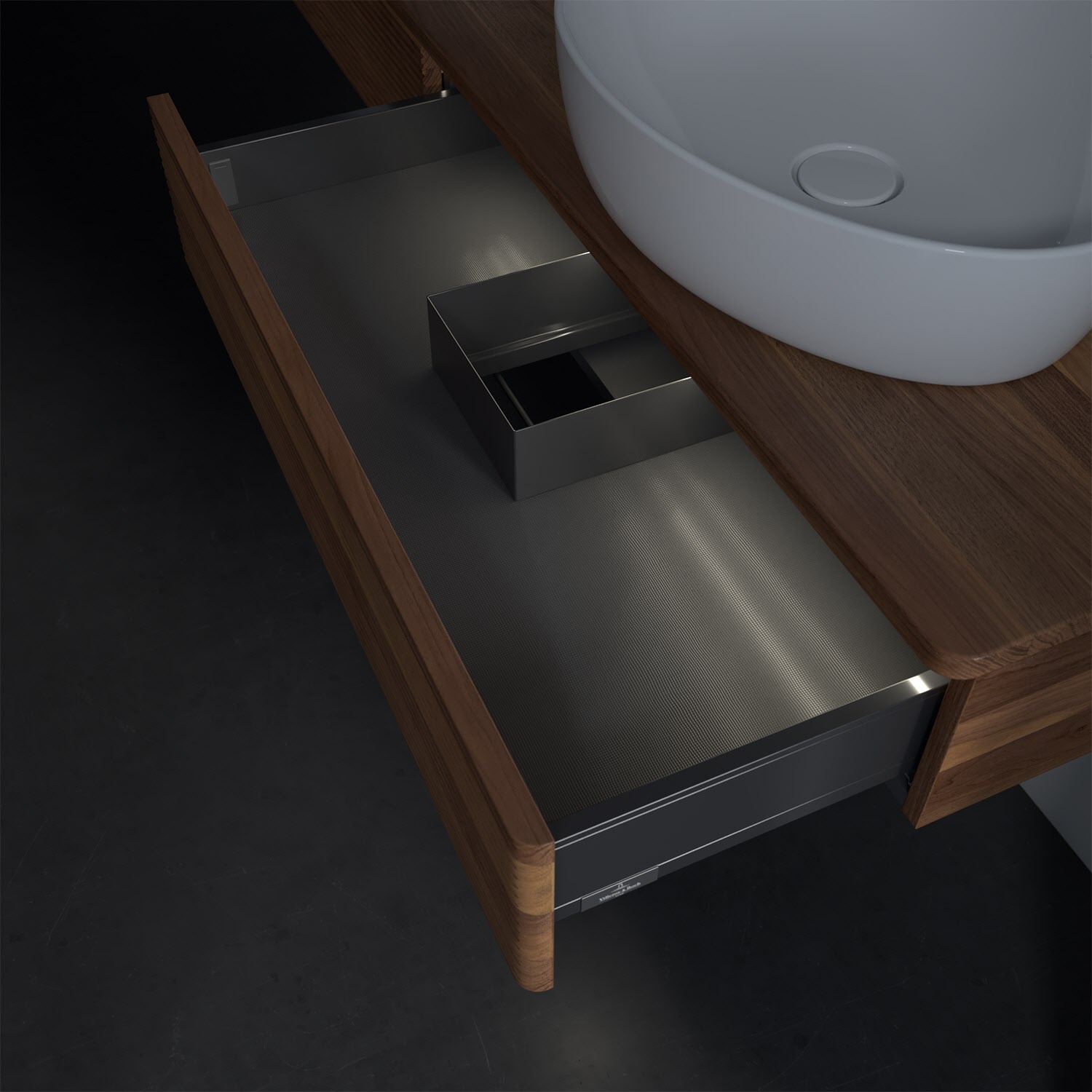 Villeroy & Boch Antao Waschbeckenunterschrank, 160 x 19 cm, 2 Auszüge mit LED-Licht, Front mit Struktur, mit Hahnloch, für Waschtisch links und rechts