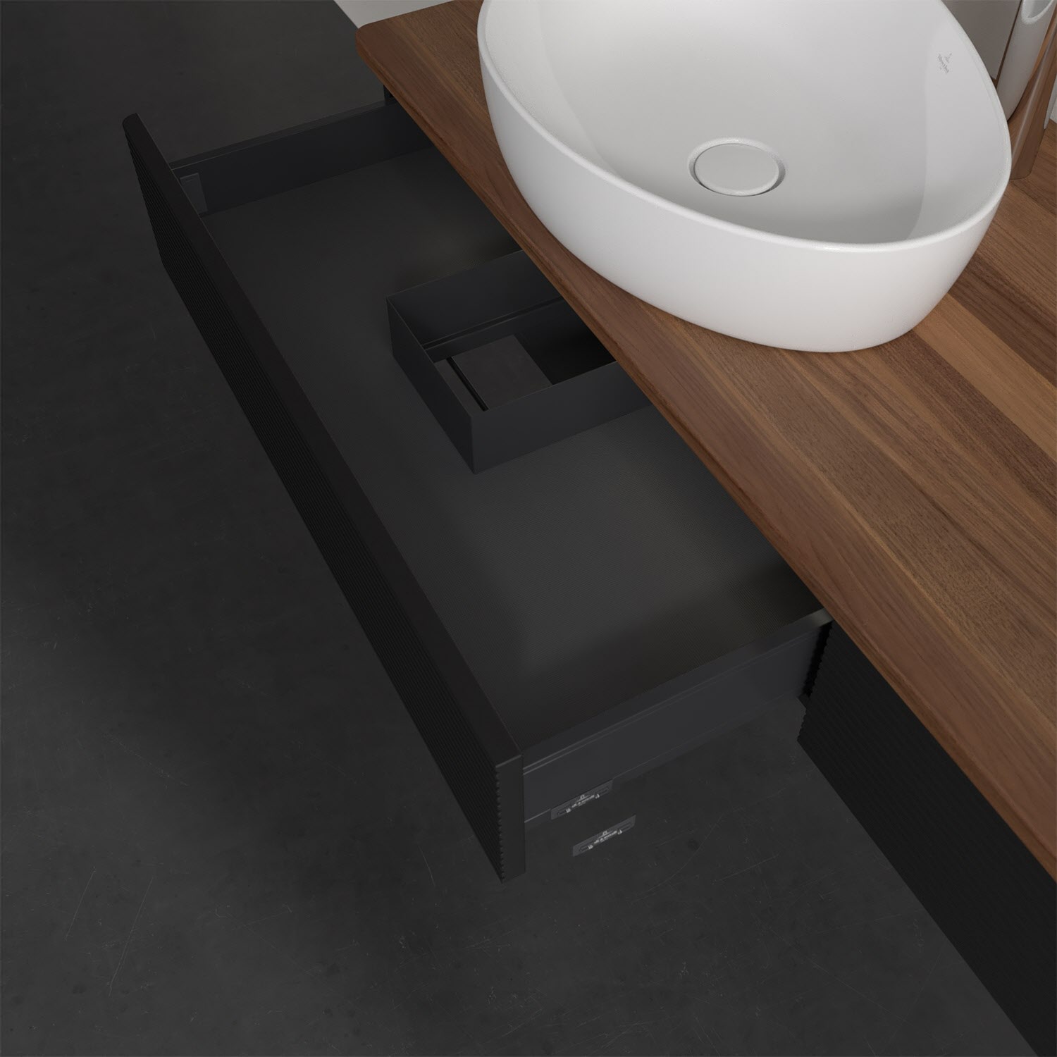 Villeroy & Boch Antao Waschbeckenunterschrank, 160 x 19 cm, 2 Auszüge mit LED-Licht, Front mit Struktur, mit Hahnloch, für Waschtisch links und rechts