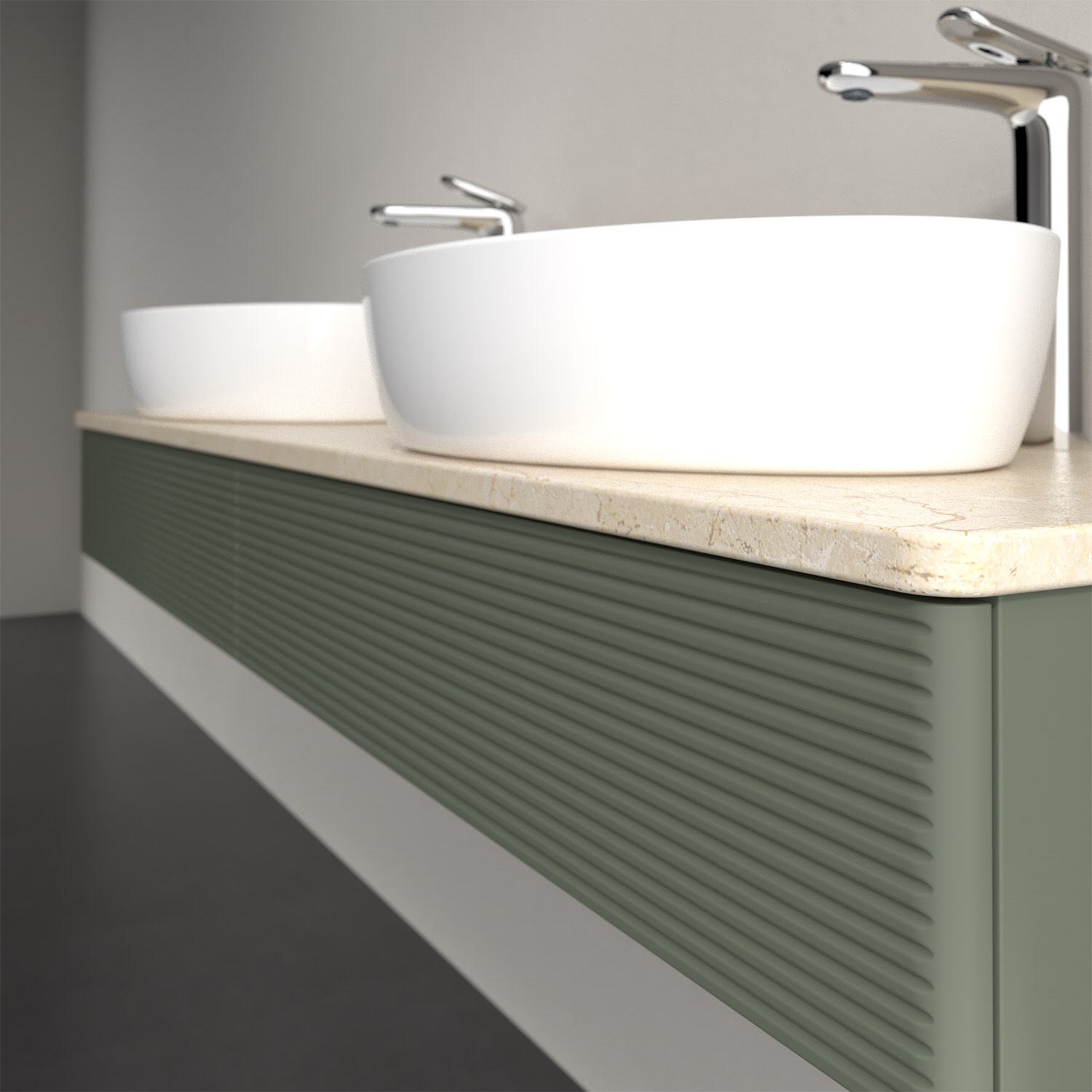 Villeroy & Boch Antao Waschbeckenunterschrank, 160 x 19 cm, 2 Auszüge mit LED-Licht, Front mit Struktur, mit Hahnloch, für Waschtisch links und rechts