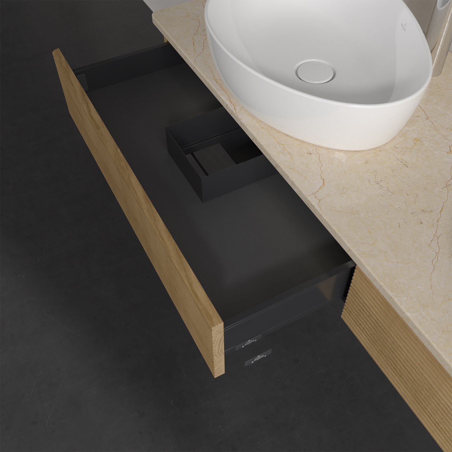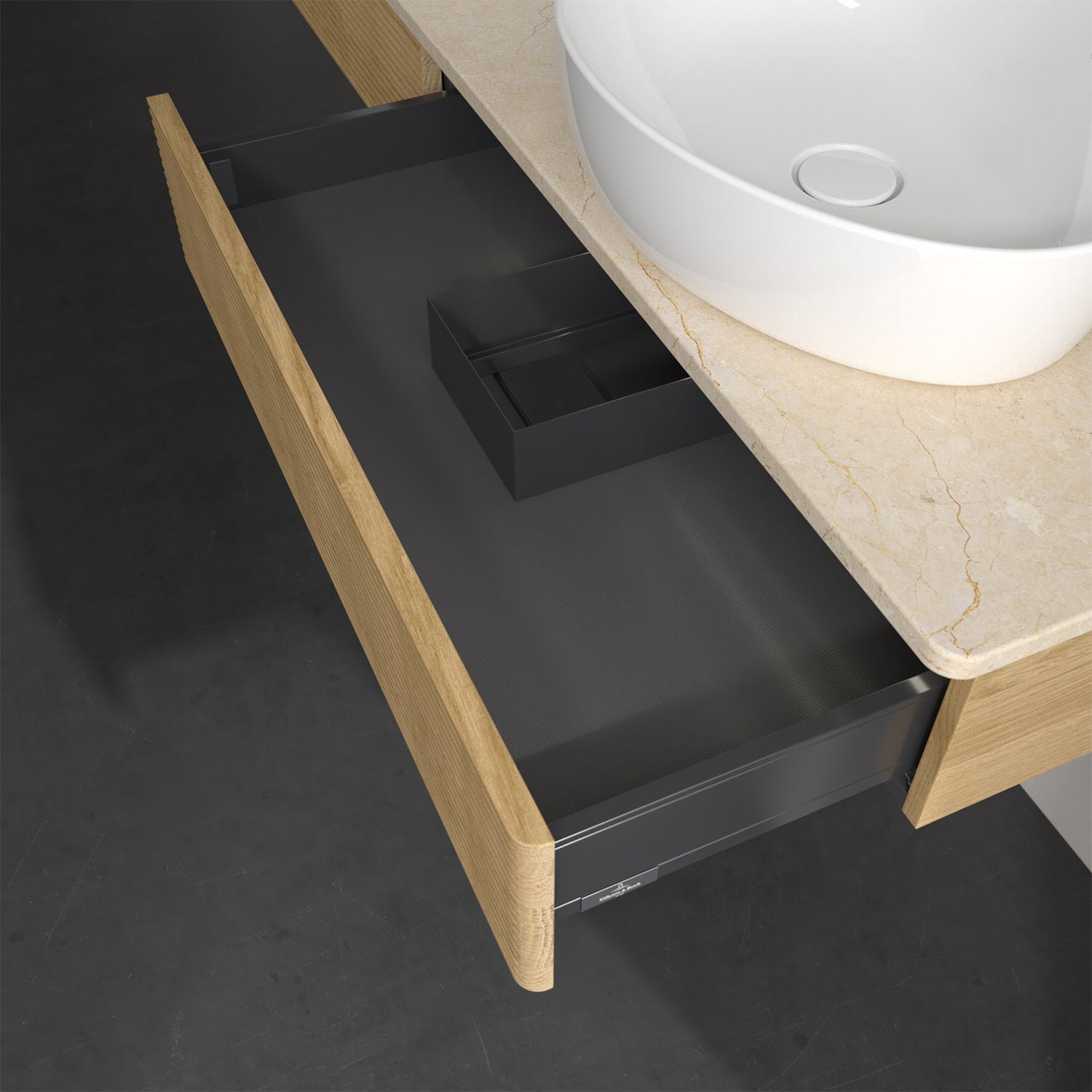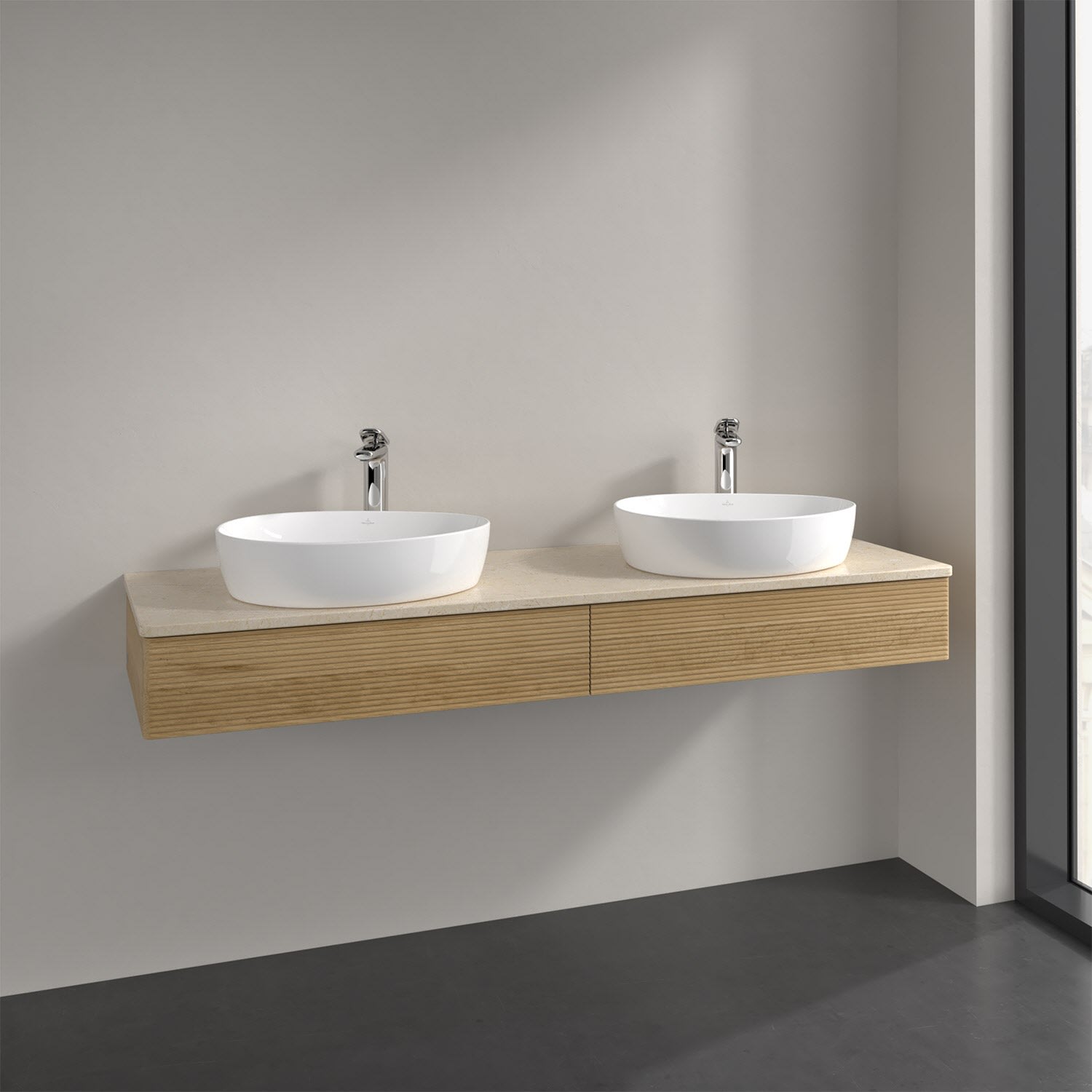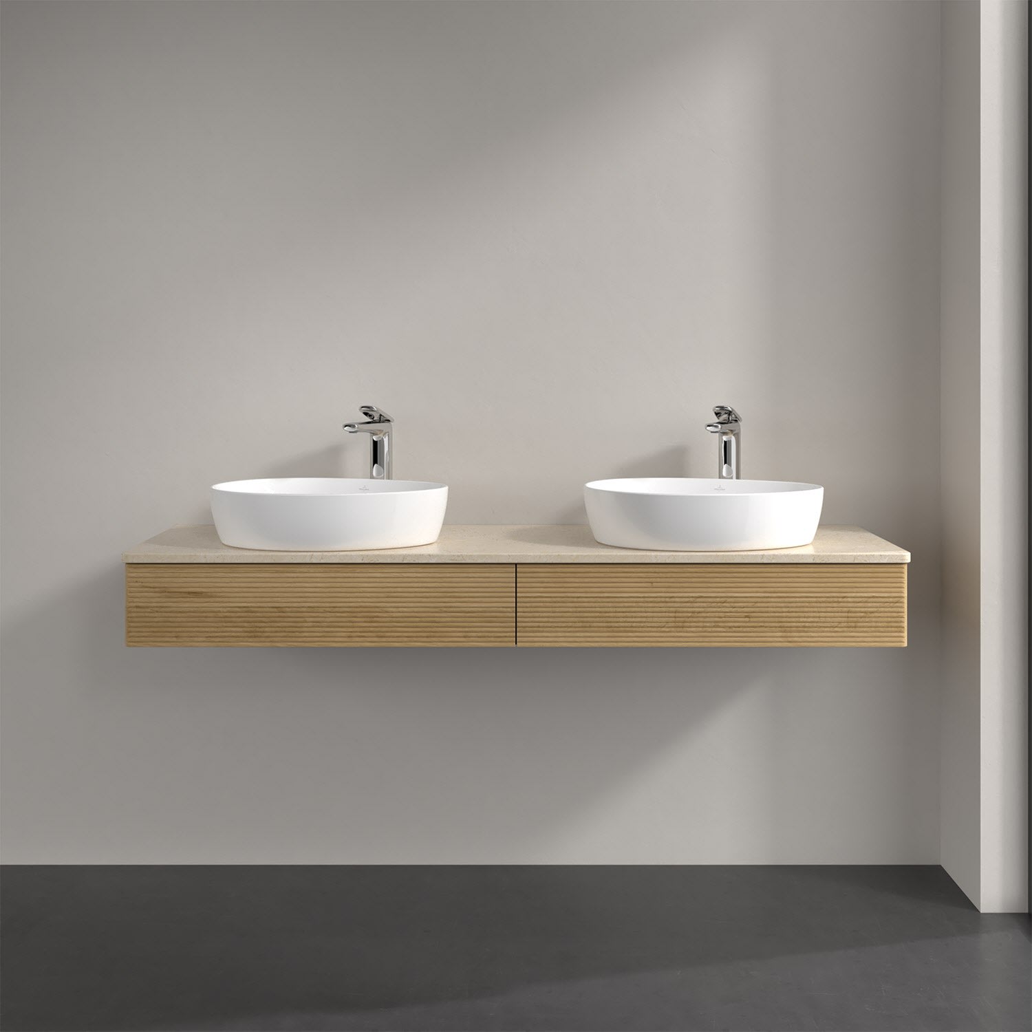 Villeroy & Boch Antao Waschbeckenunterschrank, 160 x 19 cm, 2 Auszüge mit LED-Licht, Front mit Struktur, mit Hahnloch, für Waschtisch links und rechts