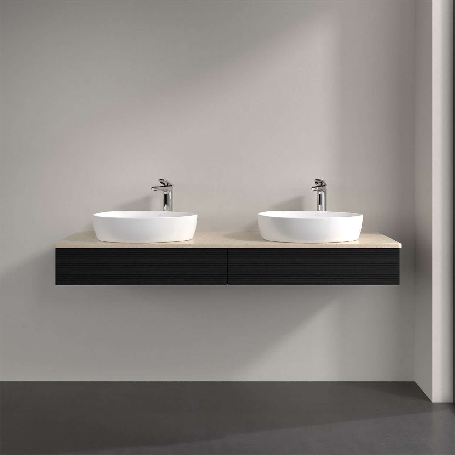 Villeroy & Boch Antao Waschbeckenunterschrank, 160 x 19 cm, 2 Auszüge mit LED-Licht, Front mit Struktur, mit Hahnloch, für Waschtisch links und rechts
