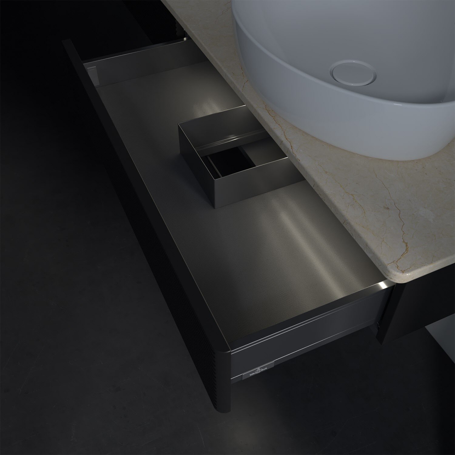 - kein Umfallen oder Verrutschen von Pflegeprodukten in den Schubladen dank rutschhemmendem Boden