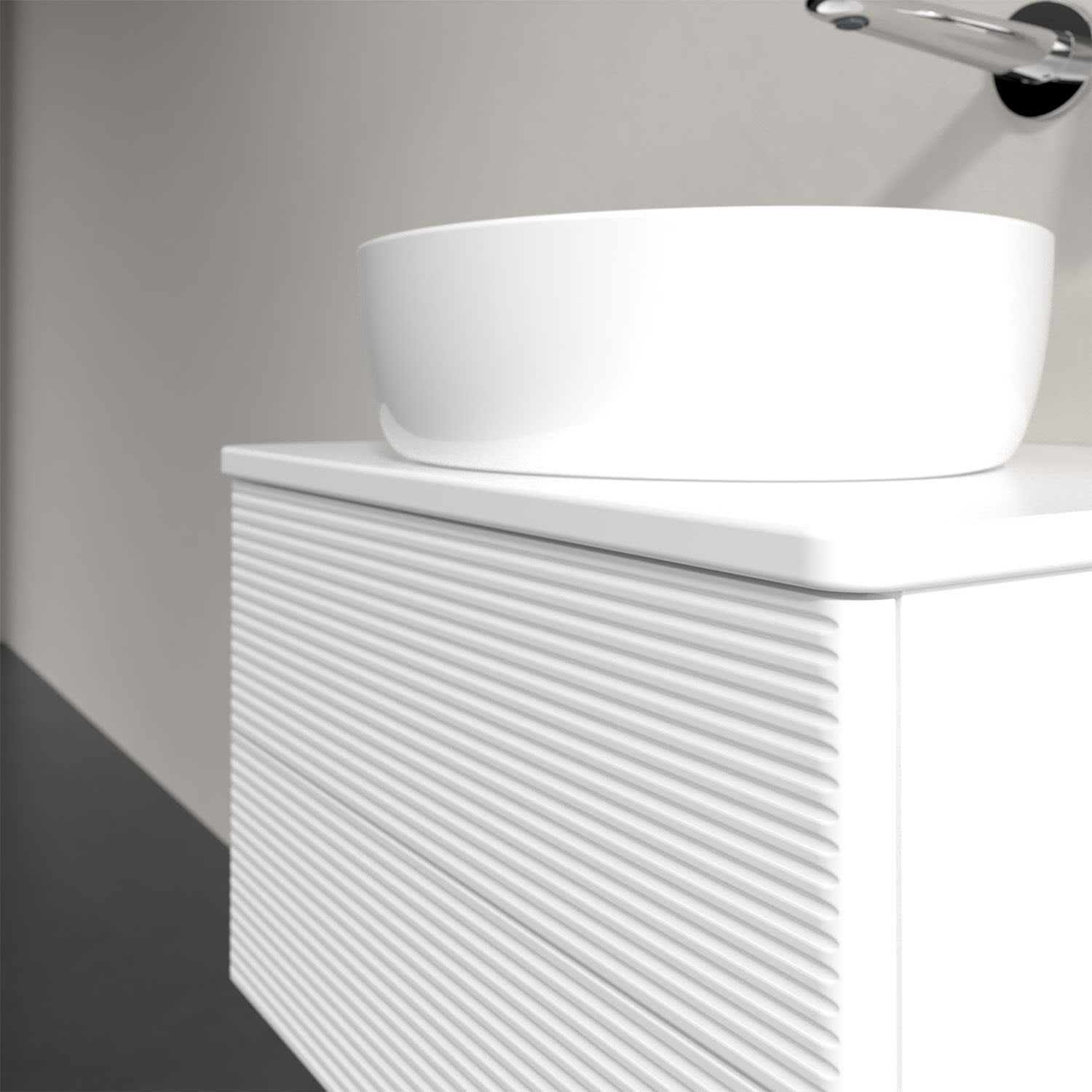 Für diesen Waschbeckenunterschrank stehen Ihnen Aufsatzwaschtische aus verschiedenen Serien zur Verfügung (siehe "Passliste" unter Downloads). Ein ausgewähltes Beispiel finden Sie im Zubehör. Den Waschtisch bitte separat mitbestellen.