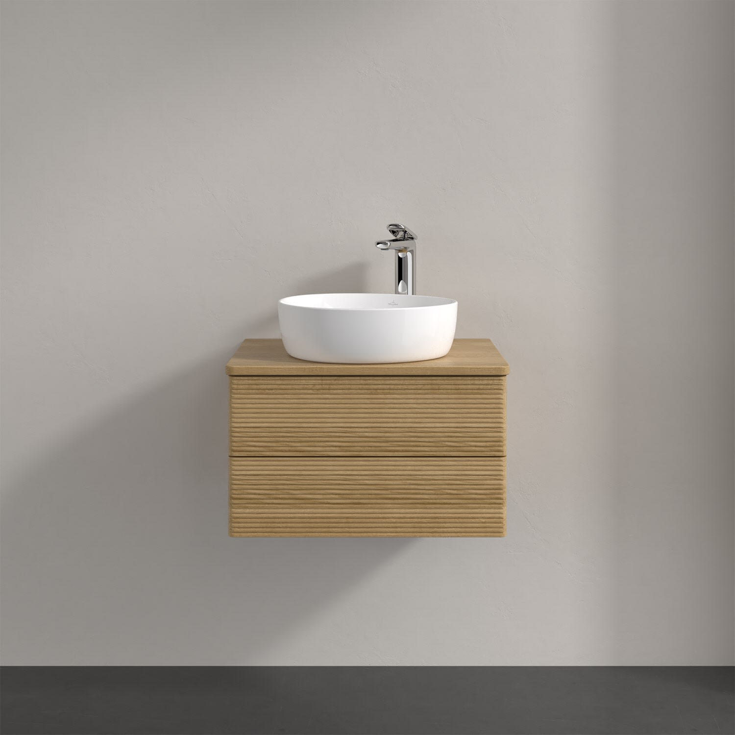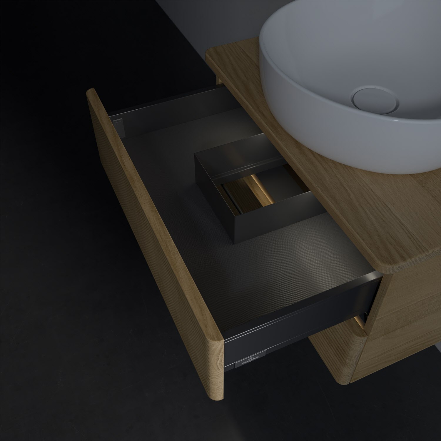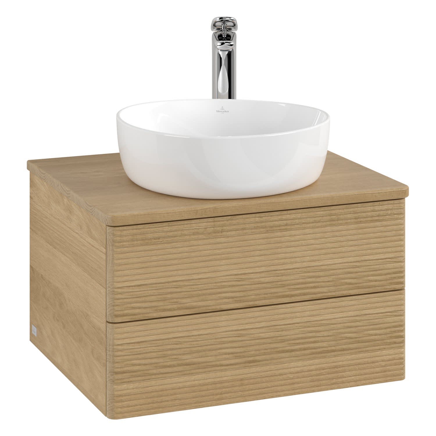 Villeroy & Boch Antao Waschbeckenunterschrank, 60 x 36 cm, 2 Auszüge mit LED-Licht, Front mit Struktur, mit Hahnloch