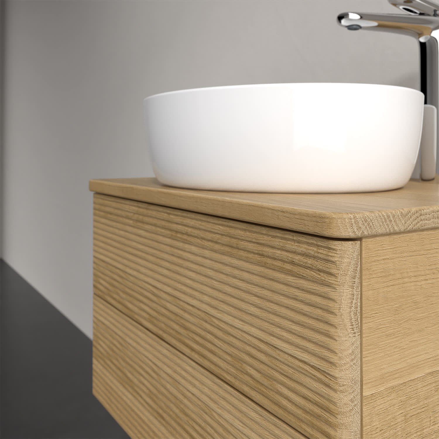 Für diesen Waschbeckenunterschrank stehen Ihnen Aufsatzwaschtische aus verschiedenen Serien zur Verfügung (siehe "Passliste" unter Downloads). Ein ausgewähltes Beispiel finden Sie im Zubehör. Den Waschtisch bitte separat mitbestellen.