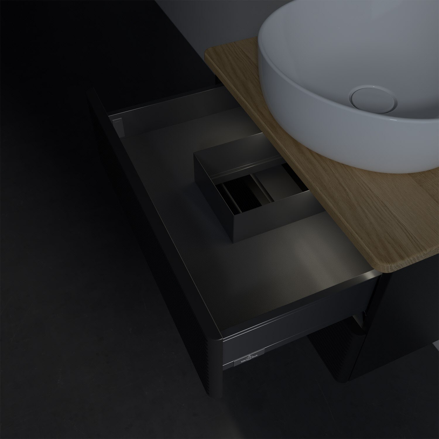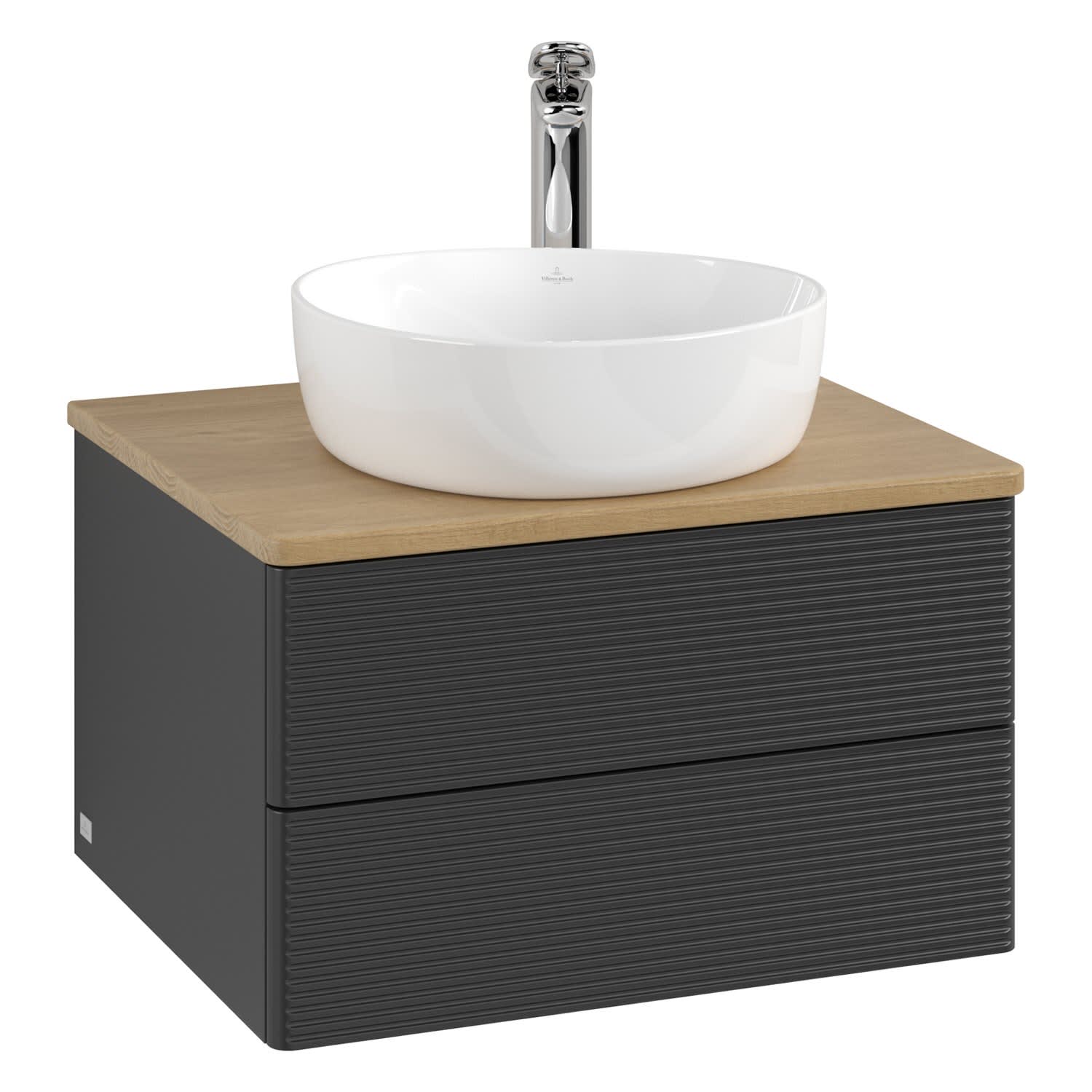 Villeroy & Boch Antao Waschbeckenunterschrank, 60 x 36 cm, 2 Auszüge mit LED-Licht, Front mit Struktur, mit Hahnloch