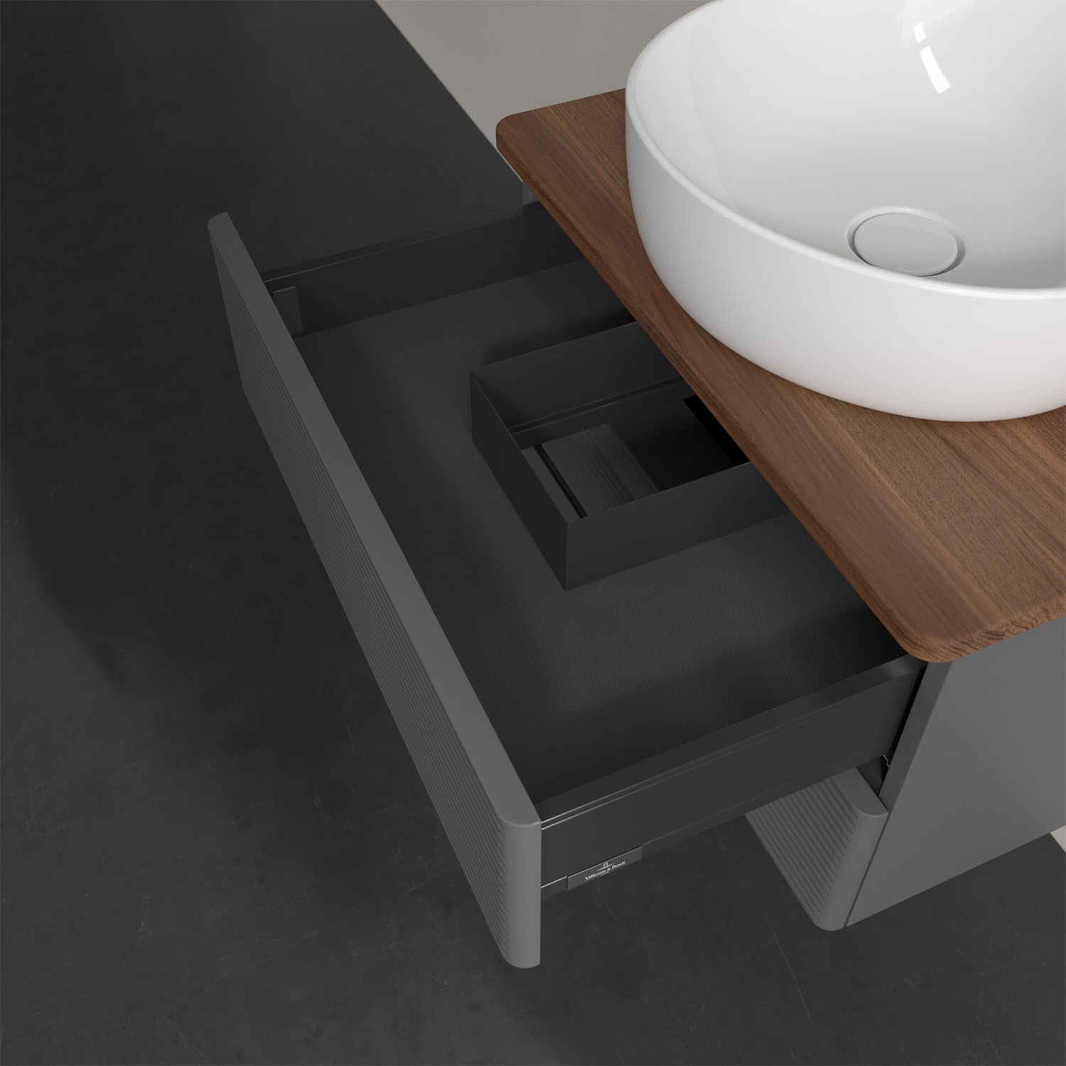 Villeroy & Boch Antao Waschbeckenunterschrank, 60 x 36 cm, 2 Auszüge mit LED-Licht, Front mit Struktur, mit Hahnloch