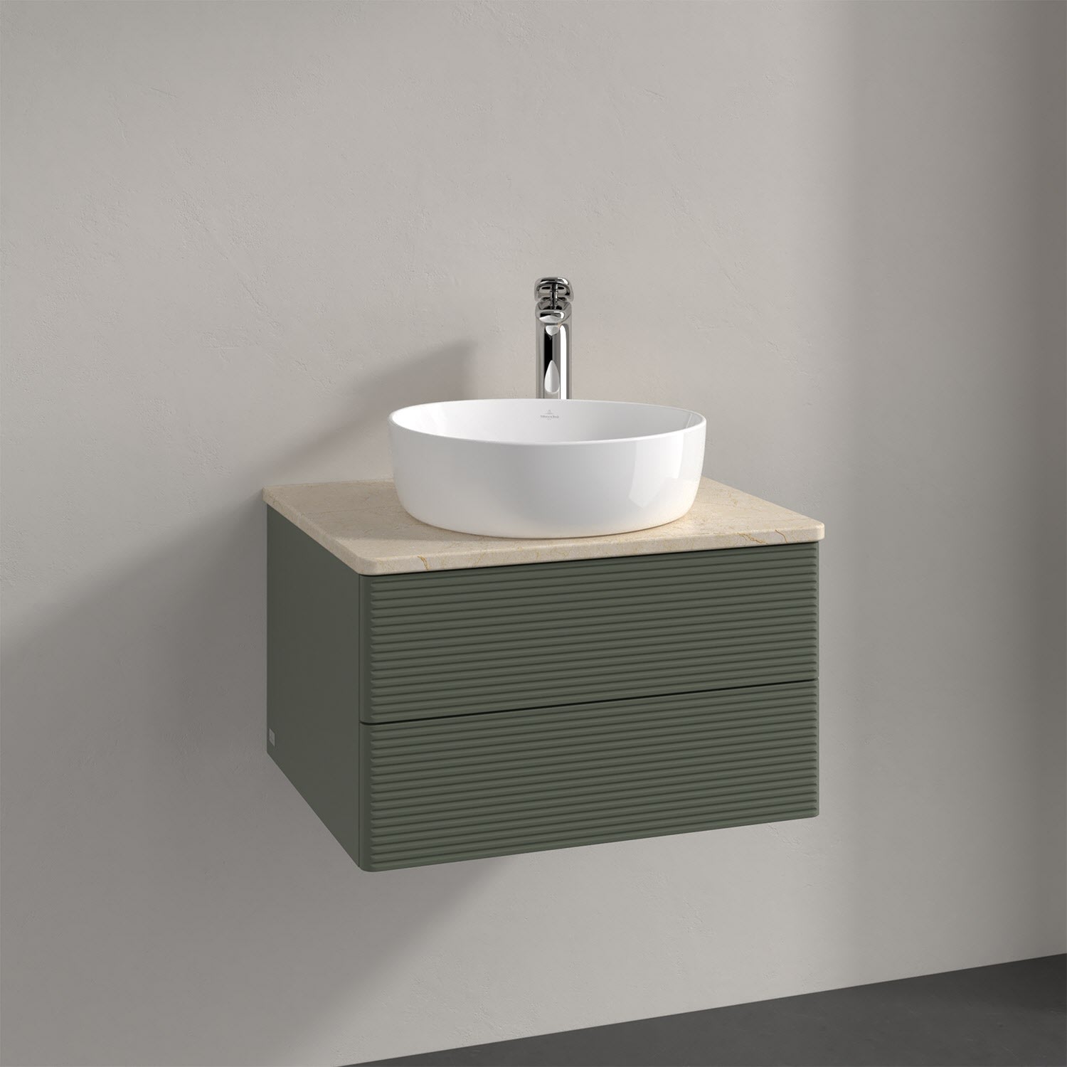 Villeroy & Boch Antao Waschbeckenunterschrank, 60 x 36 cm, 2 Auszüge mit LED-Licht, Front mit Struktur, mit Hahnloch