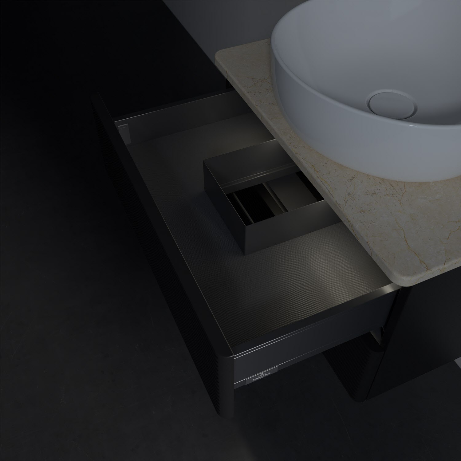 - kein Umfallen oder Verrutschen von Pflegeprodukten in den Schubladen dank rutschhemmendem Boden