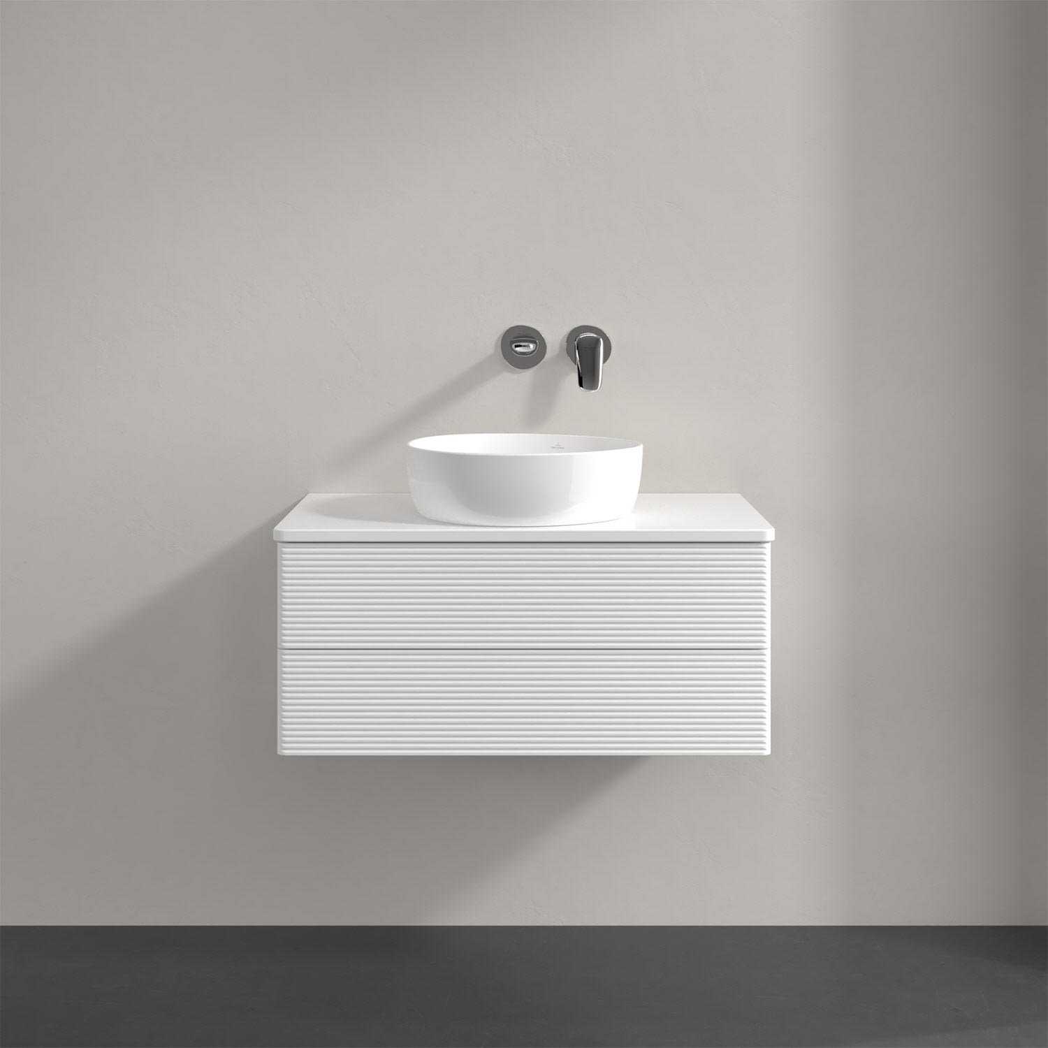 Villeroy & Boch Antao Waschbeckenunterschrank, 80 x 36 cm, 2 Auszüge mit LED-Licht, Front mit Struktur, mit Hahnloch