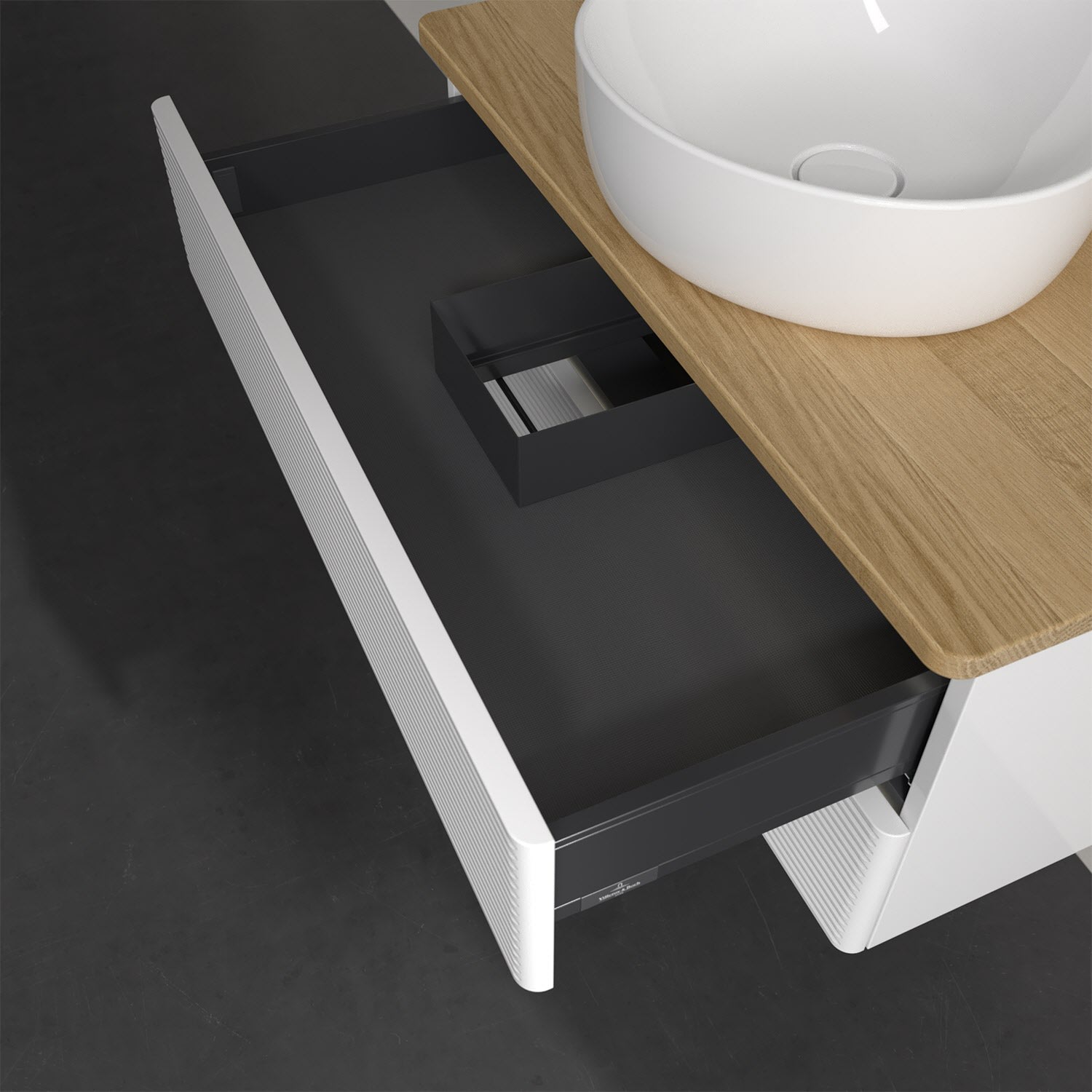 Villeroy & Boch Antao Waschbeckenunterschrank, 80 x 36 cm, 2 Auszüge mit LED-Licht, Front mit Struktur, mit Hahnloch