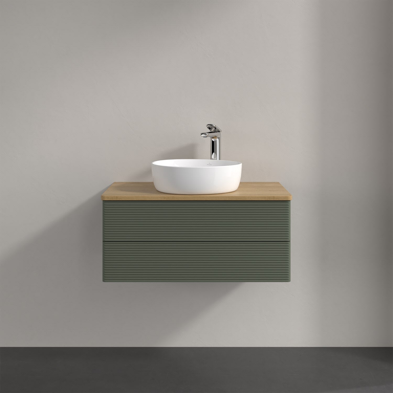 Villeroy & Boch Antao Waschbeckenunterschrank, 80 x 36 cm, 2 Auszüge mit LED-Licht, Front mit Struktur, mit Hahnloch