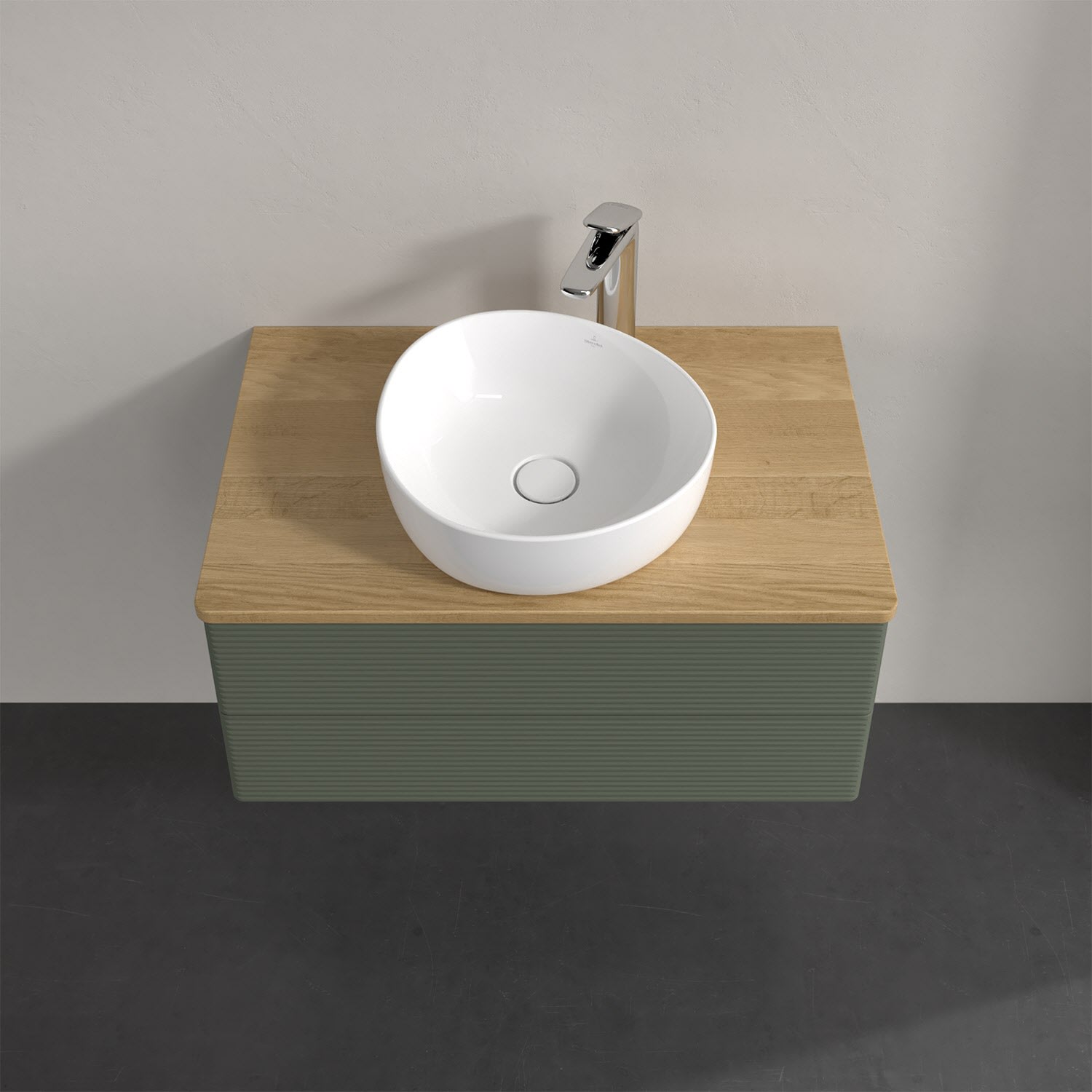 Für diesen Waschbeckenunterschrank stehen Ihnen Aufsatzwaschtische aus verschiedenen Serien zur Verfügung (siehe "Passliste" unter Downloads). Ein ausgewähltes Beispiel finden Sie im Zubehör. Den Waschtisch bitte separat mitbestellen.