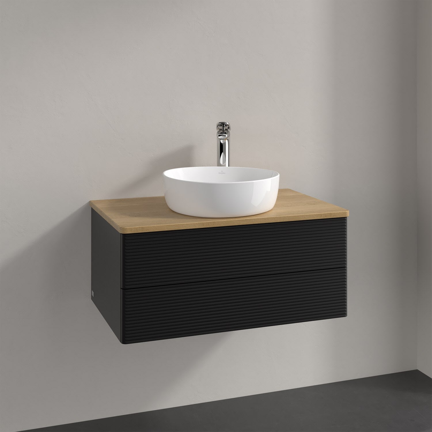 Villeroy & Boch Antao Waschbeckenunterschrank, 80 x 36 cm, 2 Auszüge mit LED-Licht, Front mit Struktur, mit Hahnloch