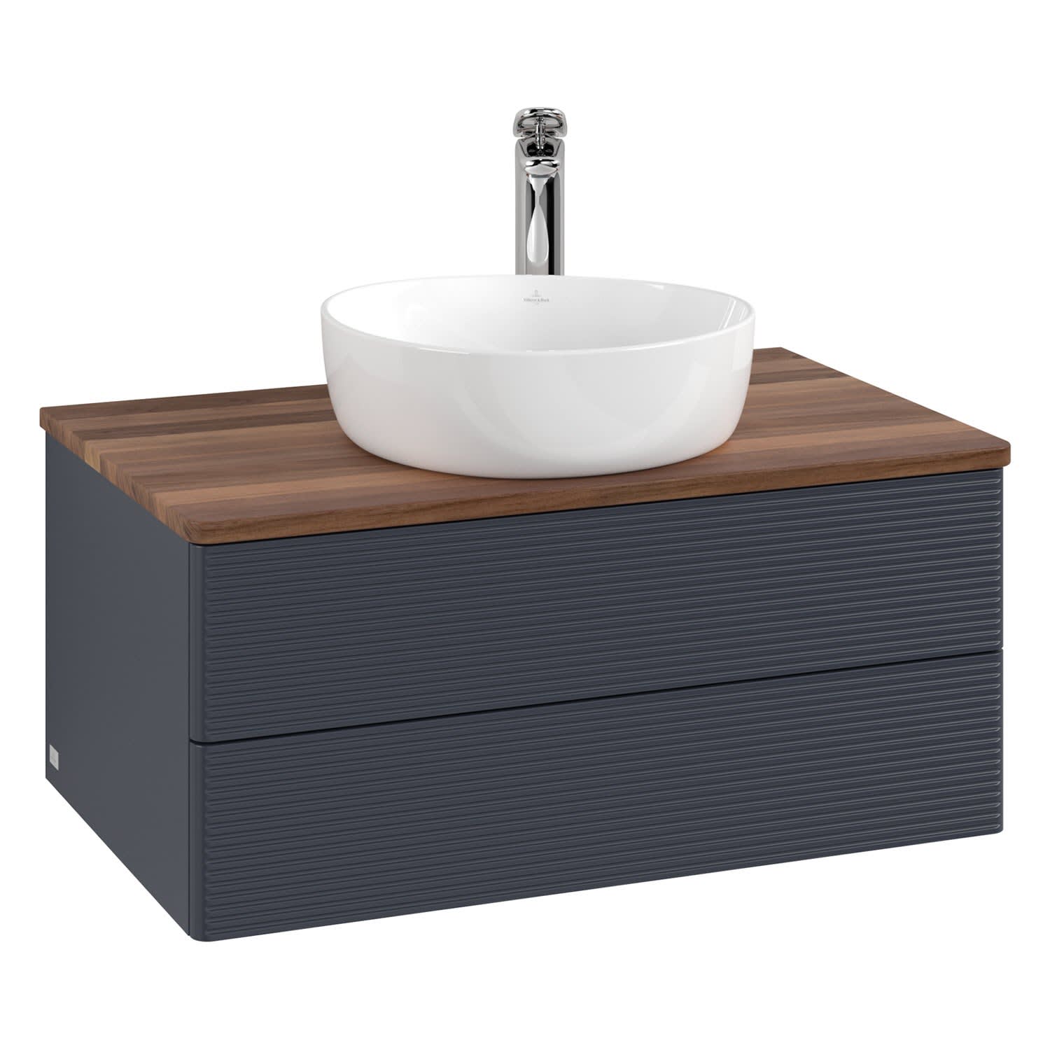 Villeroy & Boch Antao Waschbeckenunterschrank, 80 x 36 cm, 2 Auszüge mit LED-Licht, Front mit Struktur, mit Hahnloch