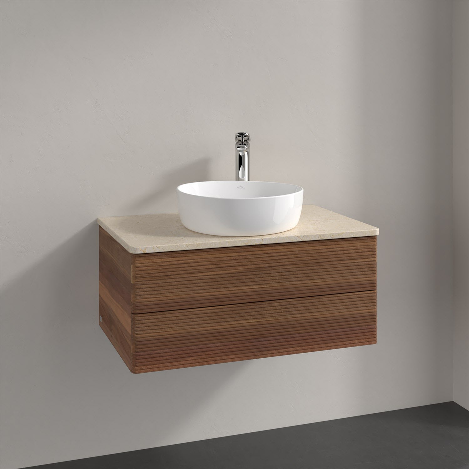 Villeroy & Boch Antao Waschbeckenunterschrank, 80 x 36 cm, 2 Auszüge mit LED-Licht, Front mit Struktur, mit Hahnloch