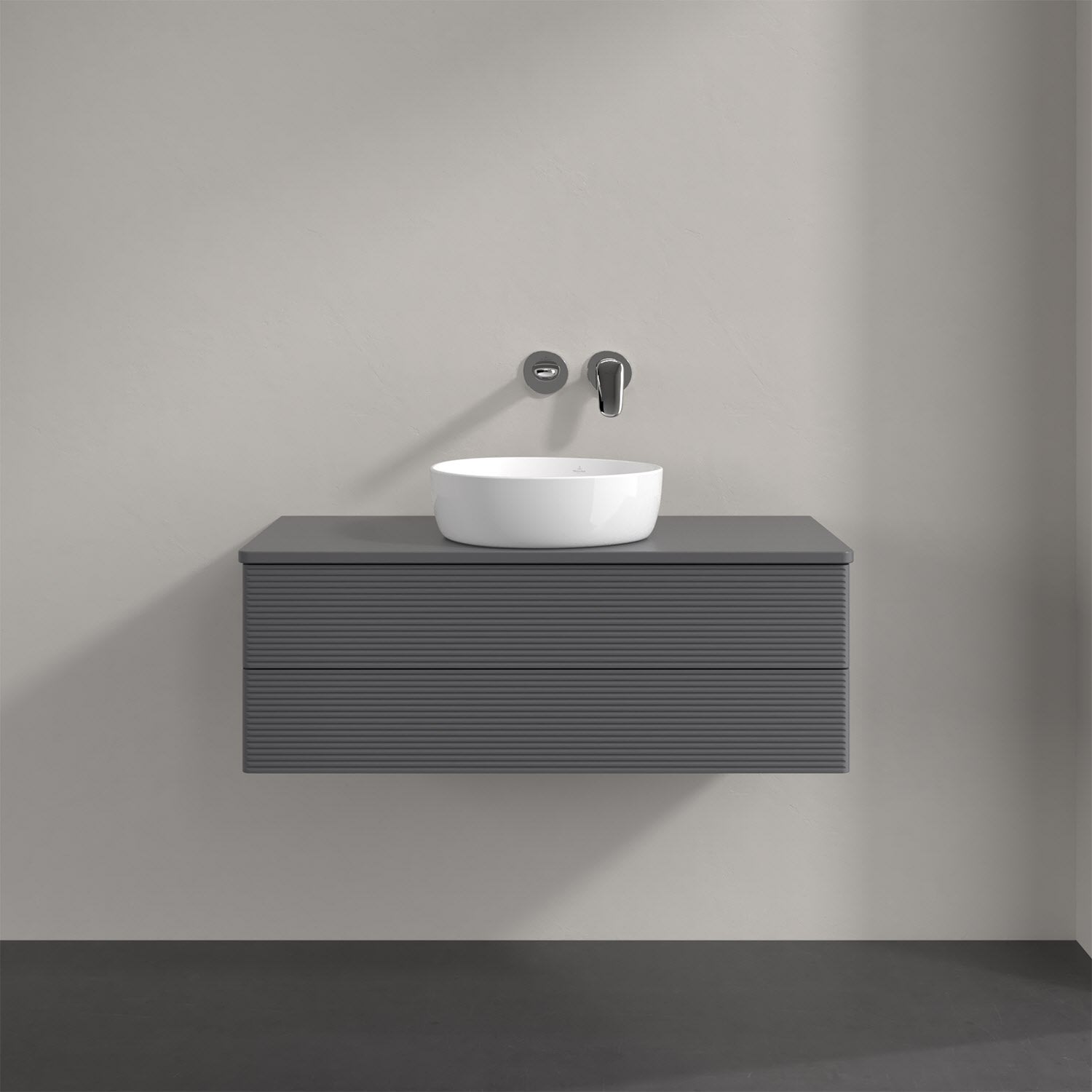 Villeroy & Boch Antao Waschbeckenunterschrank, 100 x 36 cm, 2 Auszüge mit LED-Licht, Front mit Struktur, mit Hahnloch