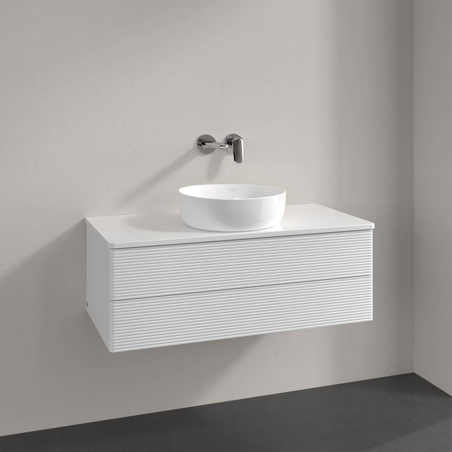 Villeroy & Boch Antao Waschbeckenunterschrank, 100 x 36 cm, 2 Auszüge mit LED-Licht, Front mit Struktur, mit Hahnloch