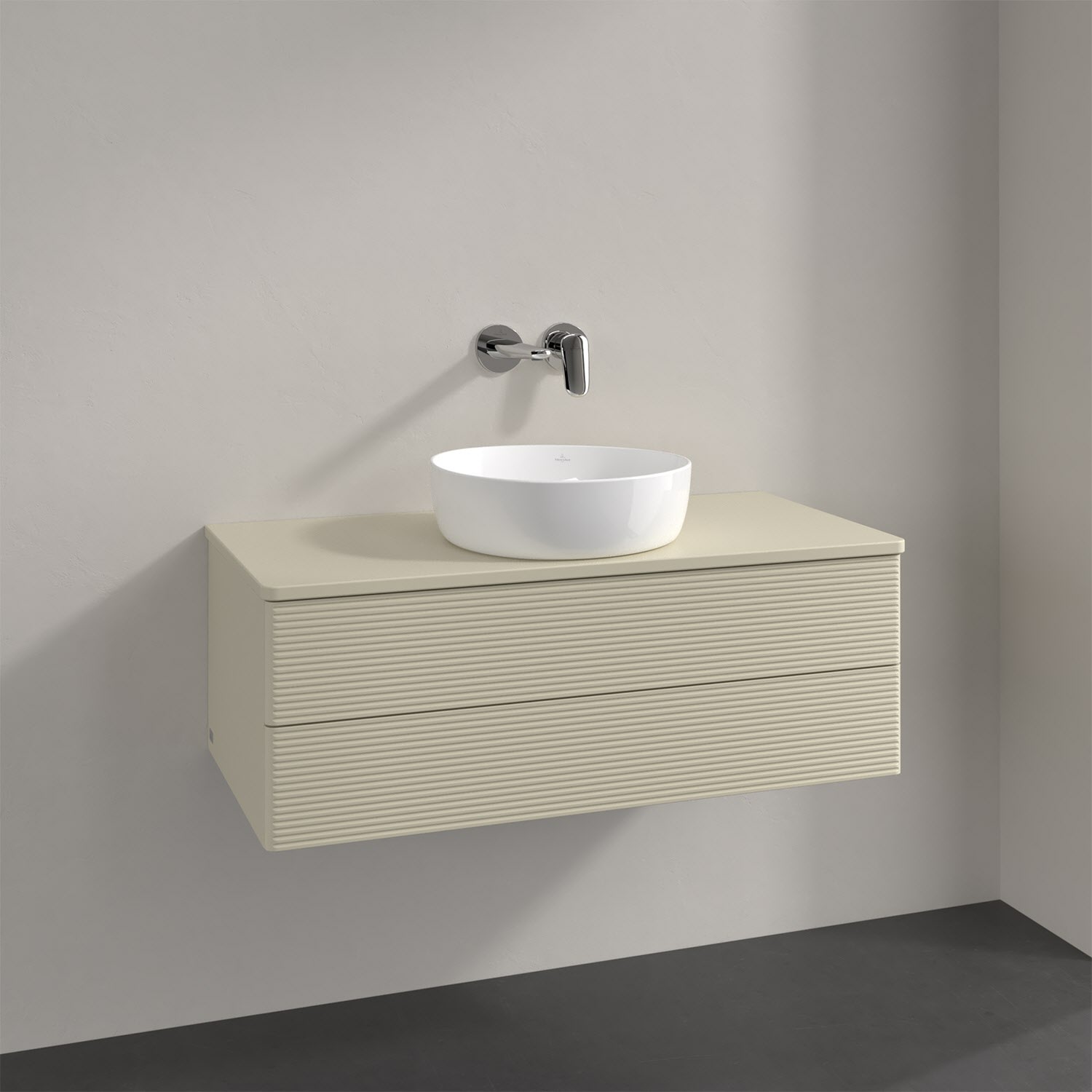 Villeroy & Boch Antao Waschbeckenunterschrank, 100 x 36 cm, 2 Auszüge mit LED-Licht, Front mit Struktur, mit Hahnloch