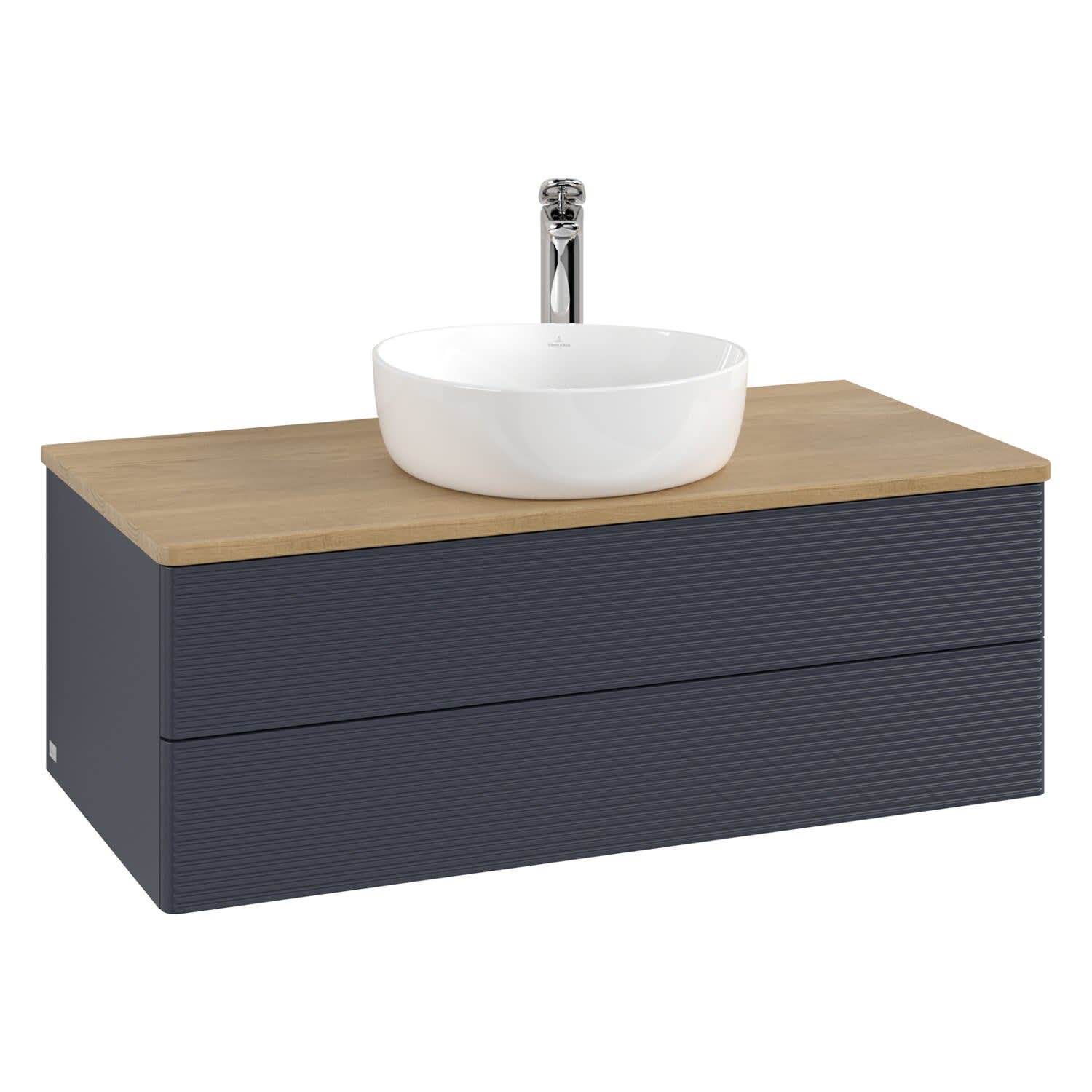 Villeroy & Boch Antao Waschbeckenunterschrank, 100 x 36 cm, 2 Auszüge mit LED-Licht, Front mit Struktur, mit Hahnloch