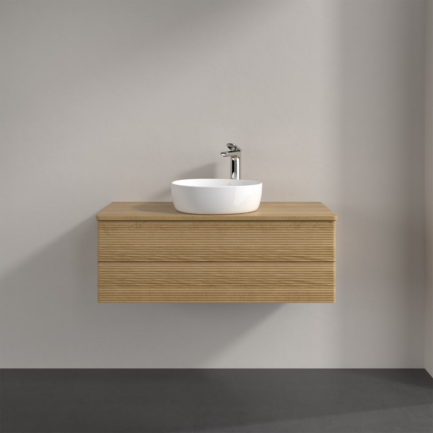 Villeroy & Boch Antao Waschbeckenunterschrank, 100 x 36 cm, 2 Auszüge mit LED-Licht, Front mit Struktur, mit Hahnloch