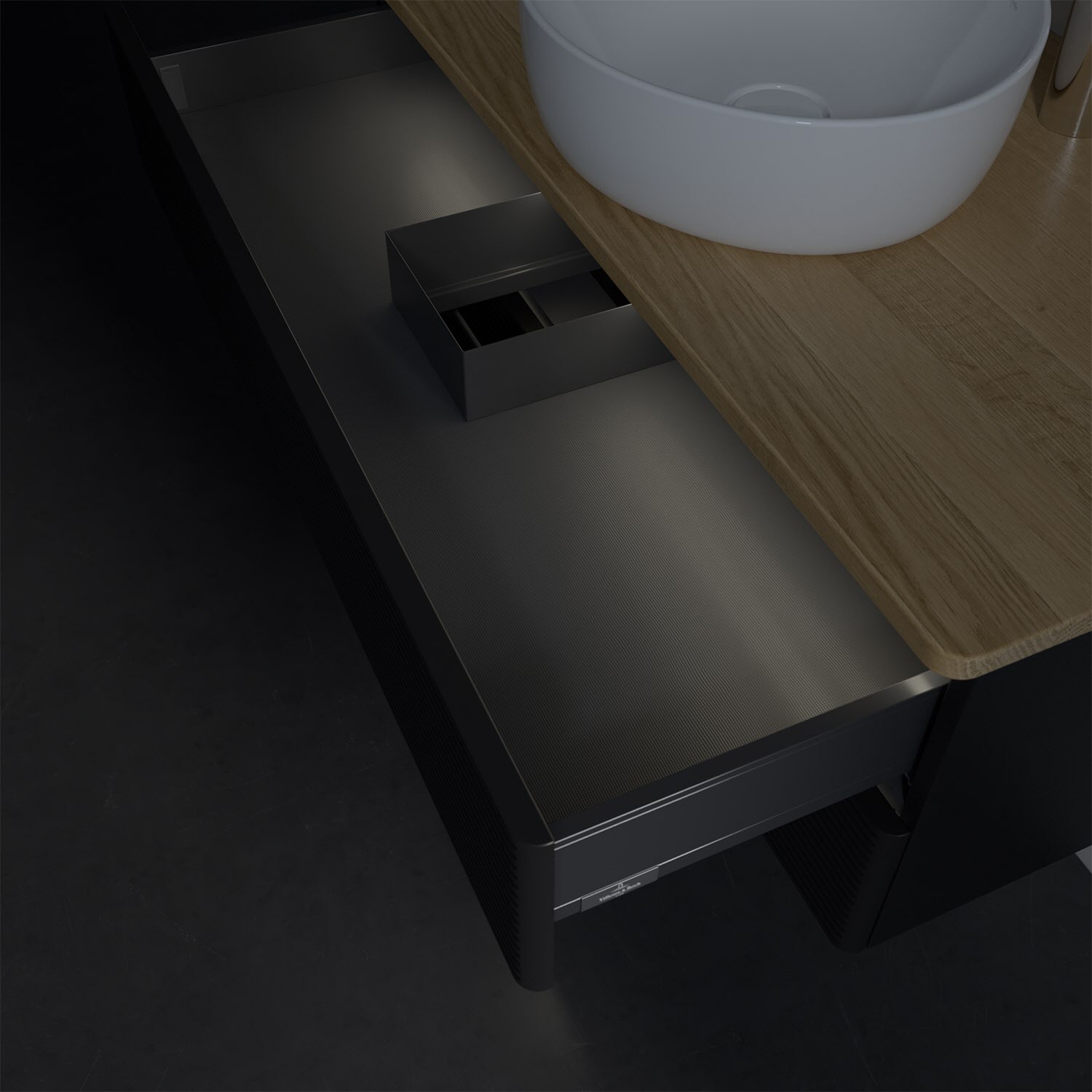 Villeroy & Boch Antao Waschbeckenunterschrank, 100 x 36 cm, 2 Auszüge mit LED-Licht, Front mit Struktur, mit Hahnloch